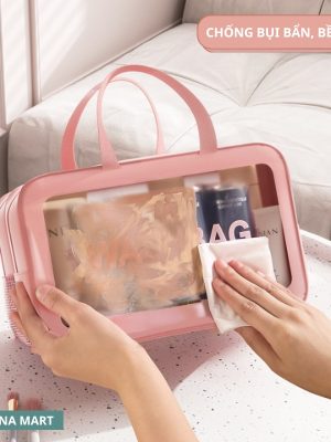 Túi đựng mỹ phẩm 2 ngăn Washbag, chất liệu PVC trong suốt, có tay cầm cao cấp Huyna Mart TD40