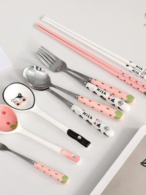 Bộ chén sứ, đĩa, thố, tô, ly ,bộ dụng cụ ăn cơm gia đình họa tiết dâu tây siêu xinh – Gốm sứ SH