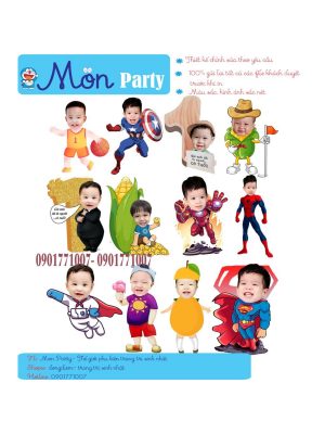 Hình chibi sinh nhật Mon Party (miễn phí thiết kế) cao 25cm, thiết kế chibi sinh nhật cho bé trang trí tiệc sinh nhật
