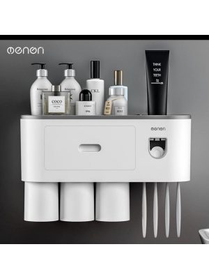 Bộ Nhả Kem Đánh Răng Tự Động, Kệ Để Đồ Phòng Tắm Cao Cấp Ecoco ( Tặng Kèm Miếng Dán )