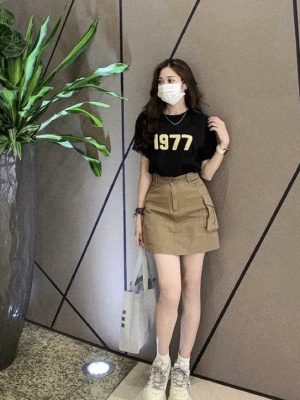 Chân Váy KaKi Chữ A Túi Hộp Phong Cách Hàn Quốc Có Quần Trong Lên From Xinh