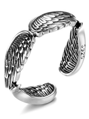 Nhẫn thiết kế hở mạ bạc 925 họa tiết lông vũ kiểu dáng thời trang