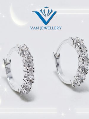 Khuyên tai bạc khuyên tròn sát tai đính đá bạc ta Van Jewelry V10566 (giá 1 đôi)