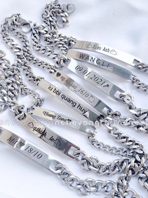 [THÉP KO RỈ] Vòng tay đôi bạch kim khắc tên theo yêu cầu (chưa kèm nam châm)