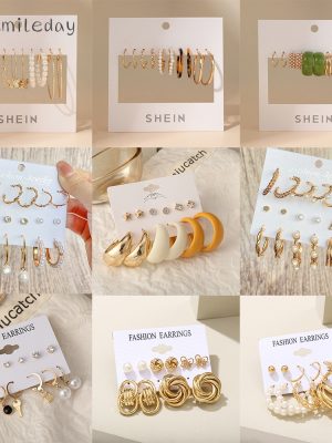 Bộ Bông Tai Ngọc Trai Bướm Vòng Tròn Lớn Khuyên Tai đinh Tán Vàng Dành Cho Phụ Nữ Phụ Kiện Trang Sức Thời Trang