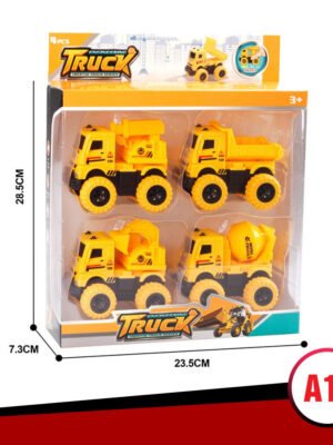 Xe đồ chơi Công trường, gồm 4 loại Xe chở vật liệu, Xe trộn, Cần cẩu, Máy xúc, nhựa ABS an toàn, lốp cao su