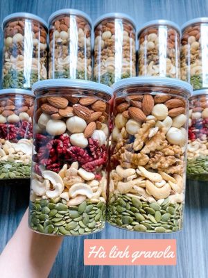 Hạt dinh dưỡng mix 5 loại hạt macca, hạt điều, óc chó, hạt bí, hạt hạnh nhân hộp 500g loại cao câp
