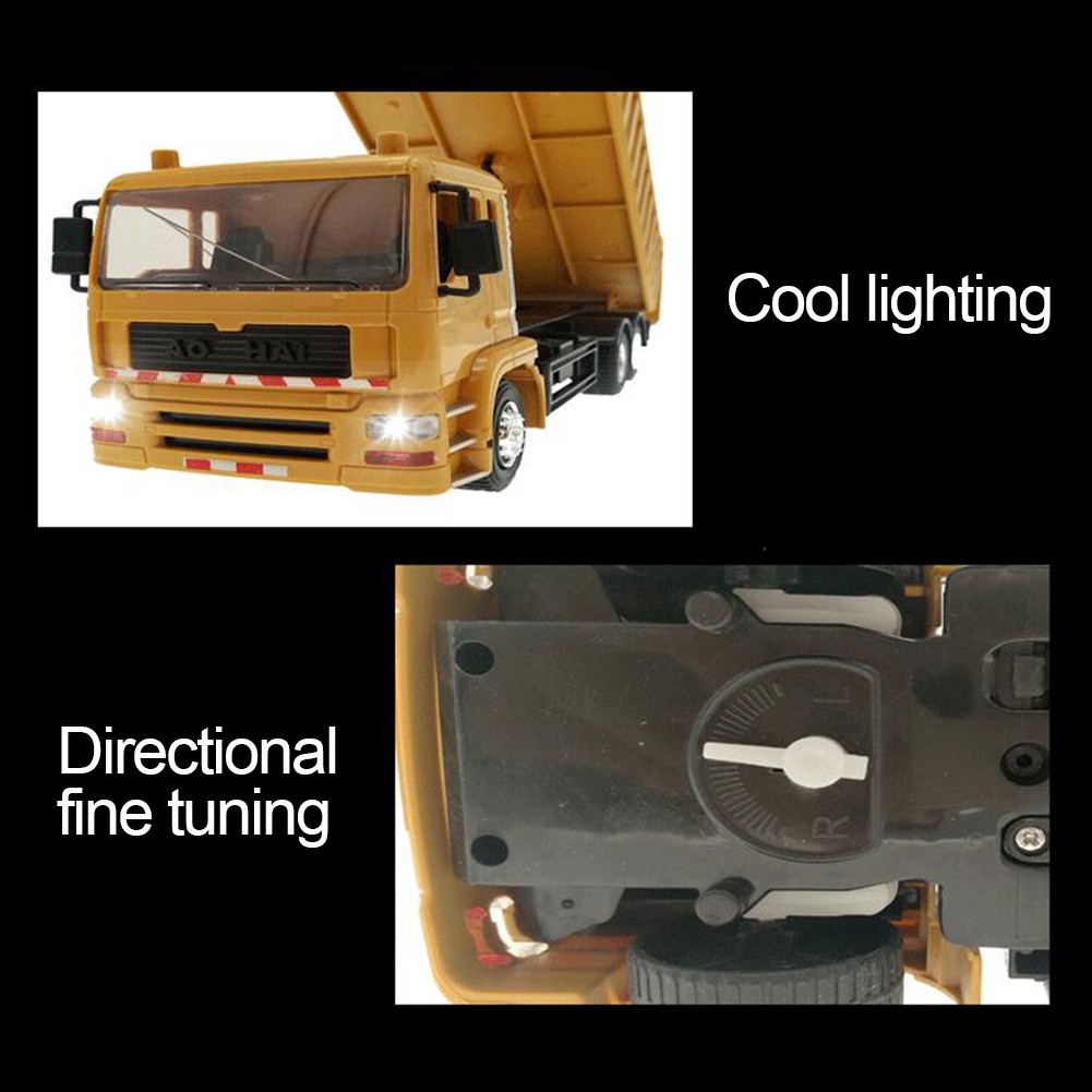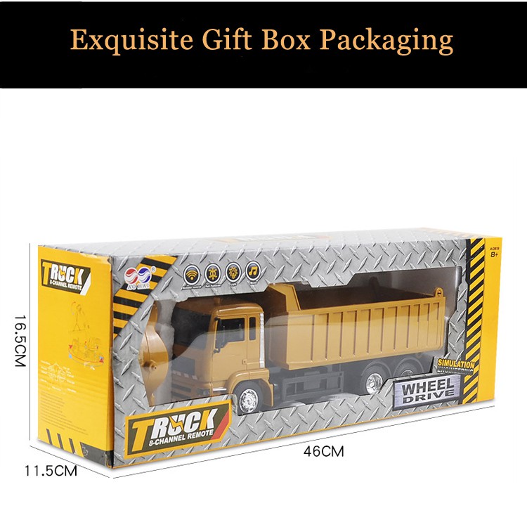 Mô phỏng mô hình vật lý, chất liệu hợp kim, cho bé trải nghiệm cảm giác điều khiển bãi đổ điều khiển từ xa bằng hợp kim 2.4GHz xe tải, điều khiển từ xa, chức năng 8 kênh, tín hiệu mạnh, vận hành dễ dàng, nhiều thao tác đồng thời mà không bị nhiễu