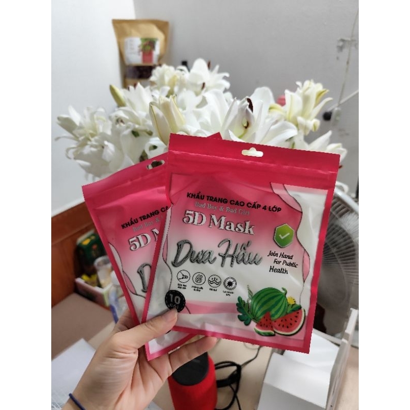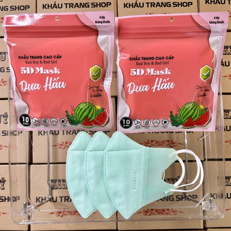 – Ưu điểm so các dòng 5D khác: Phần lớn khẩu trang 5D khác là 3 lớp, có 5D Dưa Hấu là 4 lớp