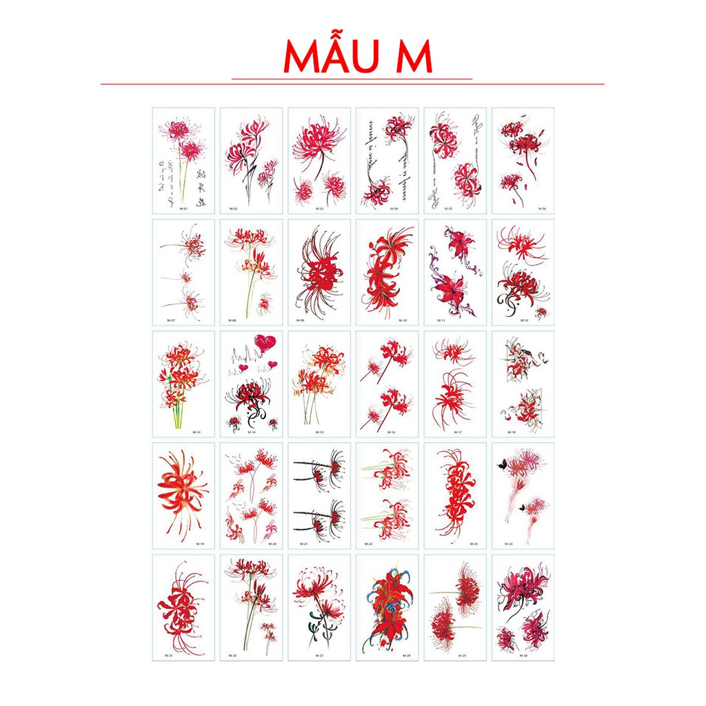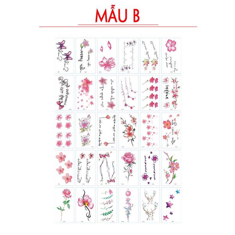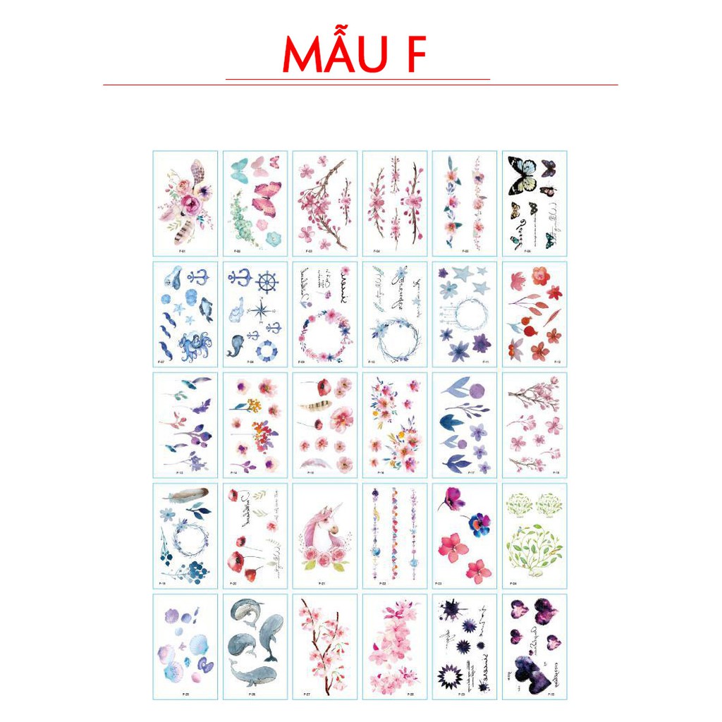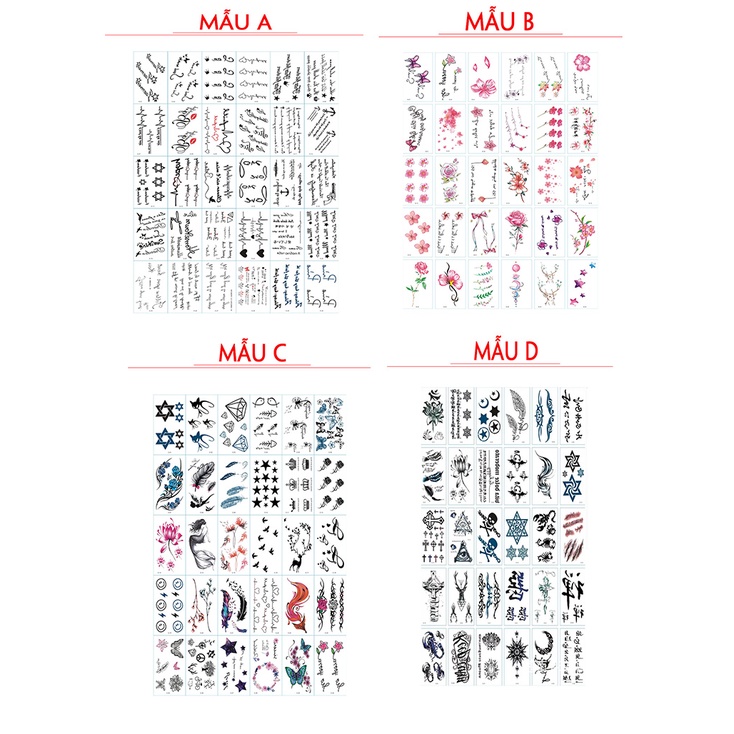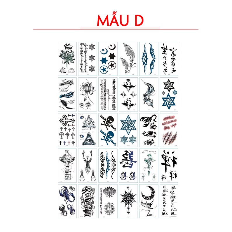 Combo 30 tờ (Từ 55 – 120 mẫu khác nhau, tùy vào độ lớn của hình xăm)
