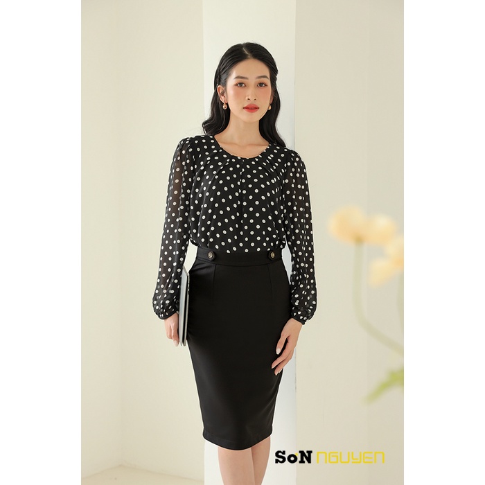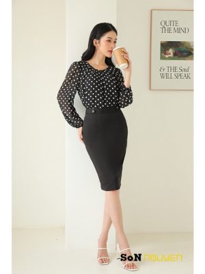 – Áo sơ mi nữ công sở chấm bi tay dài Thời trang Sơn Nguyễn 29101