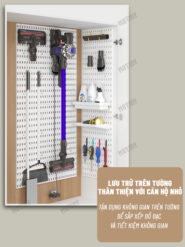 Bảng Treo Tường Pegboard Treo Dụng Cụ Gia Đình, Kệ Để Đồ Decor Lối Cửa Ra Vào Hành Lang, Giá Đỡ Máy Hút Bụi