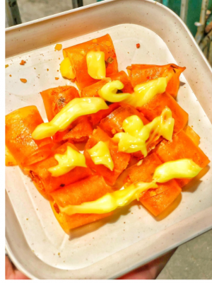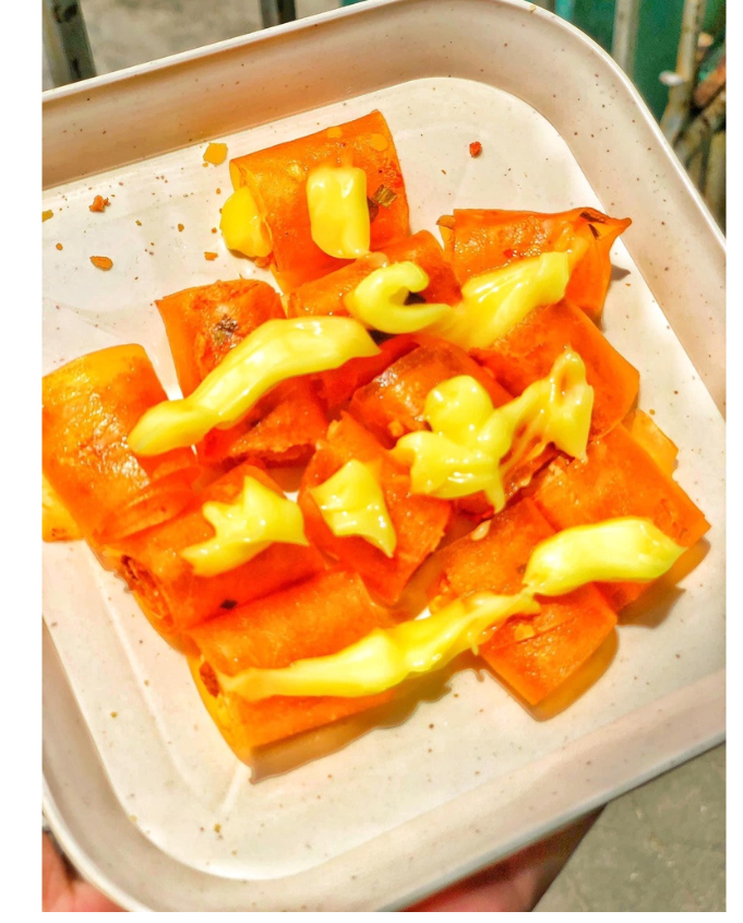 ✔️ Có 1 cái bánh tráng phơi sương to bự, dẻo dẻo cay cay ( muốn mềm hơn cứ xịt nước )