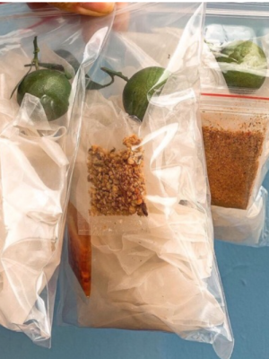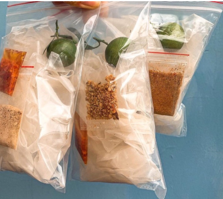 Bánh tráng tắc sate với muối ăn chay đuợc. Bạn có thể ăn không nếu muốn; 1 ly nhỏ chứa ớt sa tế . Ớt ĐẬM ĐÀ, Muối CAY CAY, kích thích vị giác ăn là nghiện