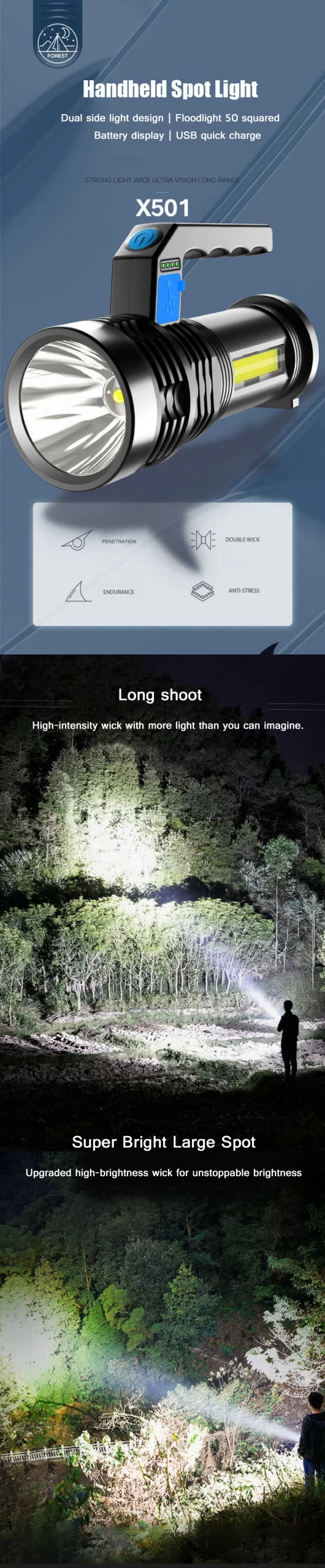 BIKIGHT P500 Double Light Đèn pin mạnh tầm xa 500m với COB Sidelight USB có thể sạc lại Đèn pha LED chiếu điểm cầm tay mạnh mẽ