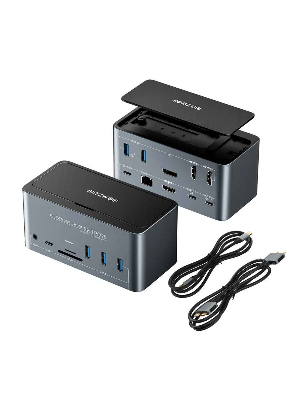 BlitzWolf® BW-TH13 Ổ cắm USB C 18 trong 1 với M.2 Vỏ bọc SSD Màn hình bốn lần Màn hình SD / TF Khe cắm thẻ nhớ SD / TF Cổng Ethernet RJ45 Cung cấp điện 100W – Giao diện DP