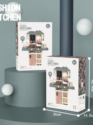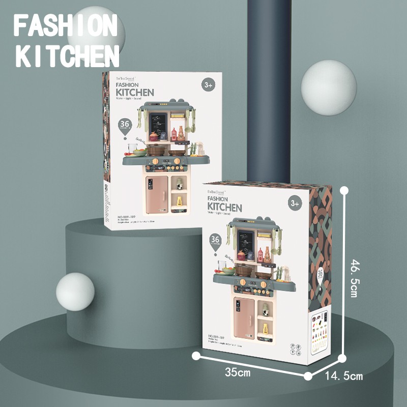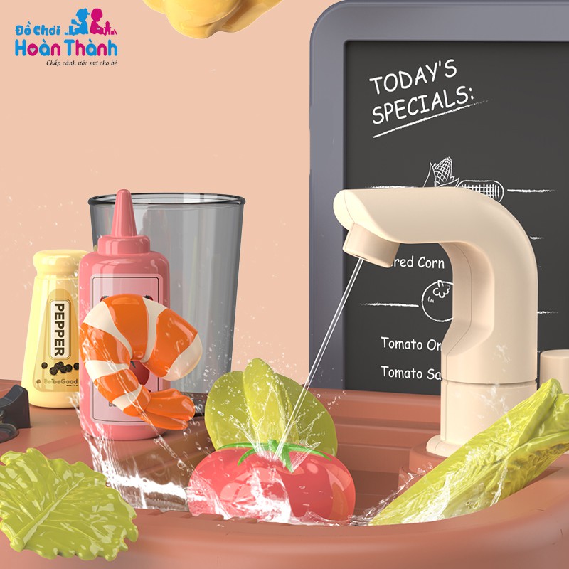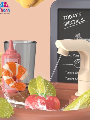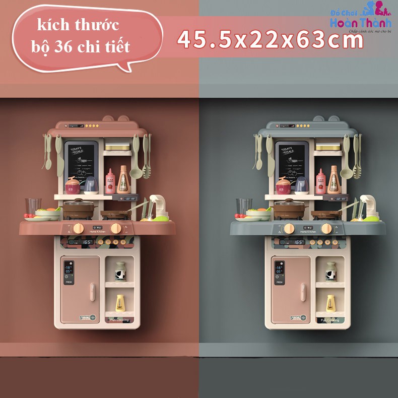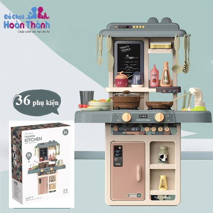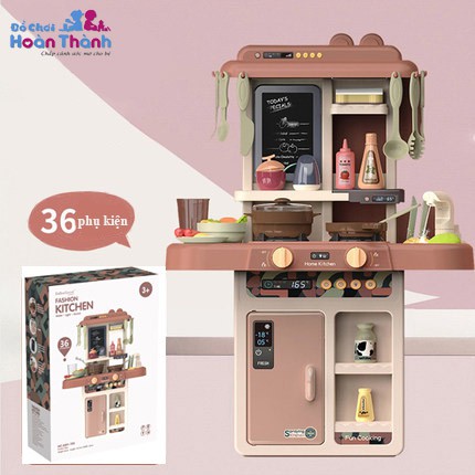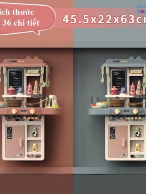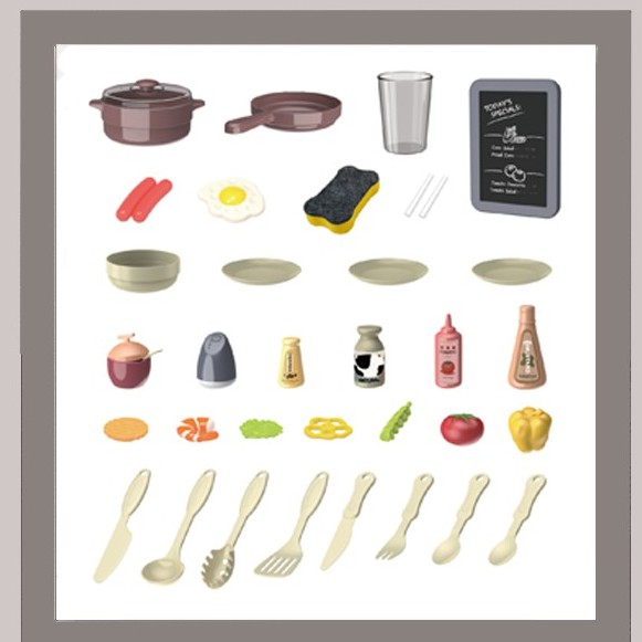 -Bộ đồ chơi bao gồm + 36 phụ kiện đi kèm + Vòi bơm nước + Có âm thanh và hiệu ứng ngọn lửa + Có bảng viết *Lợi ích từ bộ đồ chơi nấu ăn: