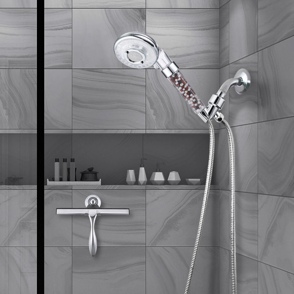 - 【Hệ thống lọc ba lớp】: 1. Bóng khoáng hồng ngoại: Lọc sạch nước trong vòi hoa sen, loại bỏ 99% độc tố clo trong nước giúp tóc và da khỏe mạnh hơn. 2. Bóng có ion âm: Tạo cảm giác tươi mát, dễ dàng được da hấp thụ, hình thành các phân tử nước ở dạng phân tử nhỏ, giảm mệt mỏi và thúc đẩy quá trình trao đổi chất. 3. Bóng năng lượng: Điều chỉnh độ pH của nước để làm cho nước yếu và tốt cho sức khỏe.