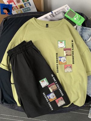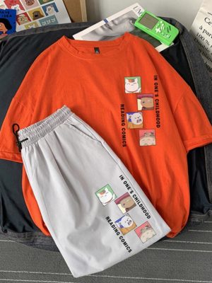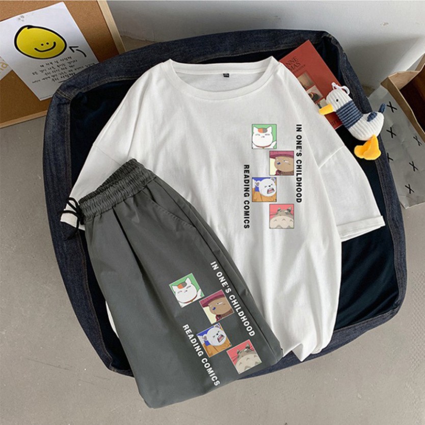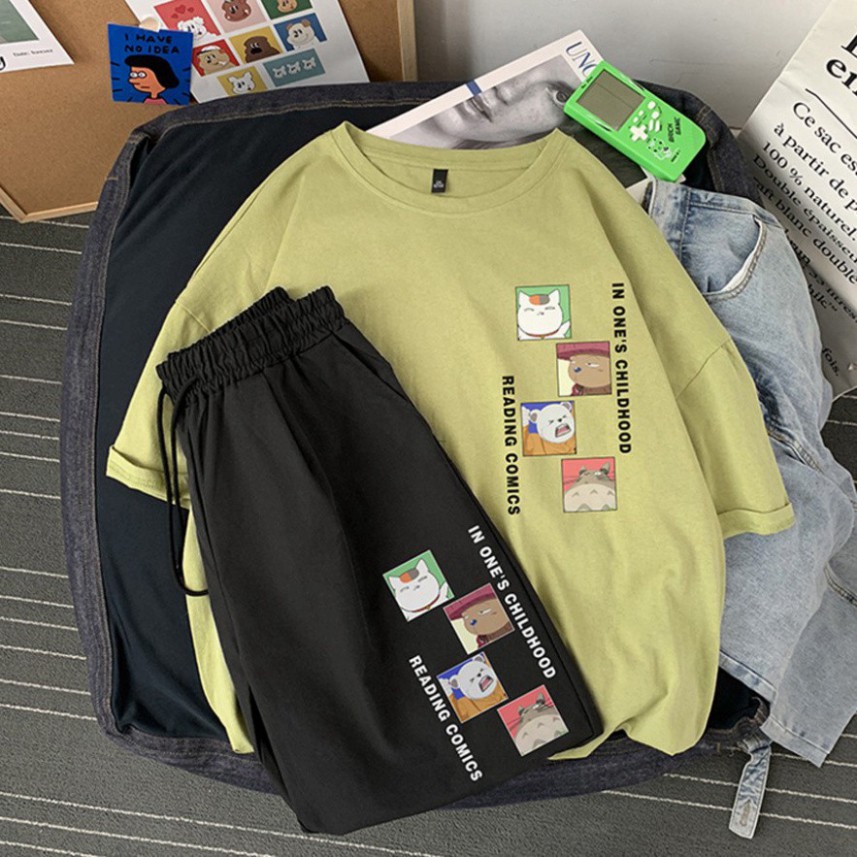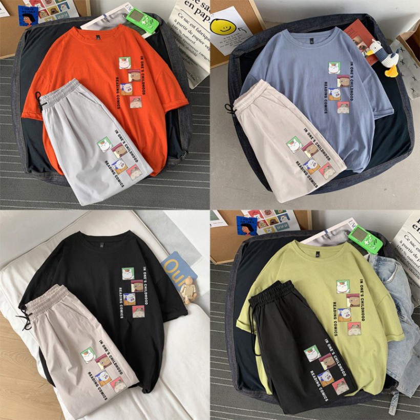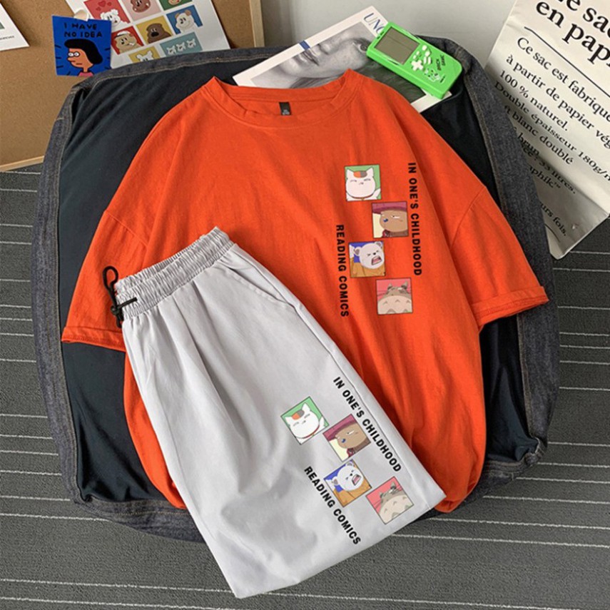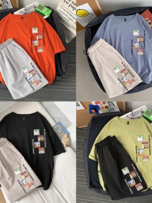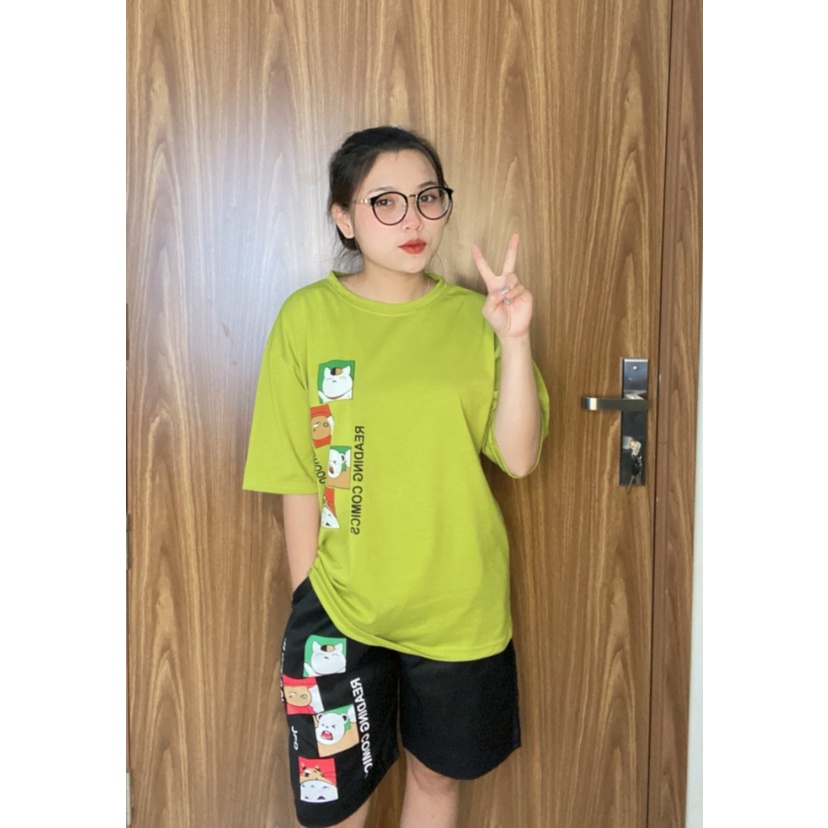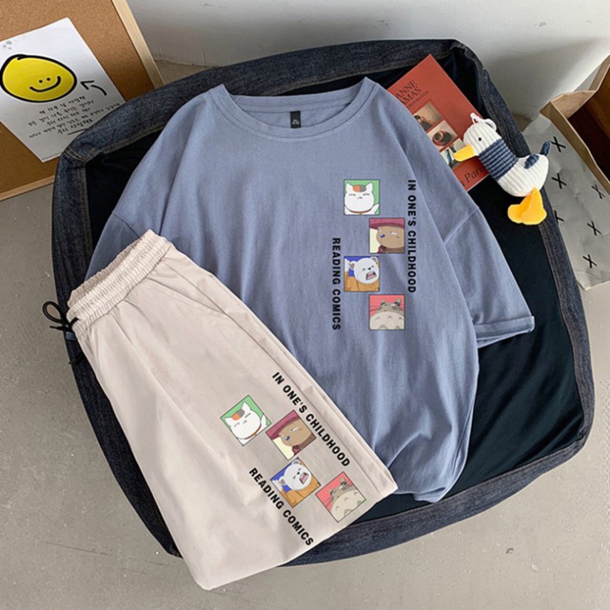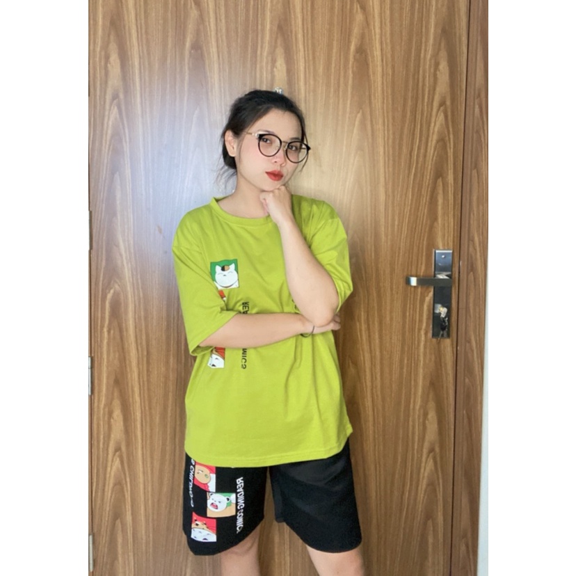 Bộ Thể Thao Nam Nữ Mùa Hè – MayLinh shop- Áo Thun Tay Lỡ Unisex Form Rộng Oversize Cotton Và Quần Short Đùi Kaki
