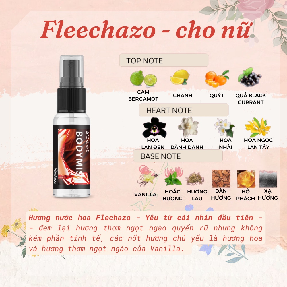 🌸 Hương nước hoa Flechazo (Hương thơm quyến rũ): Yêu từ cái nhìn đầu tiên – đem lại hương thơm ngọt ngào quyến rũ nhưng không kém phần tinh tế, các nốt hương chủ yếu là hương hoa và hương thơm ngọt ngào của Vanilla.
