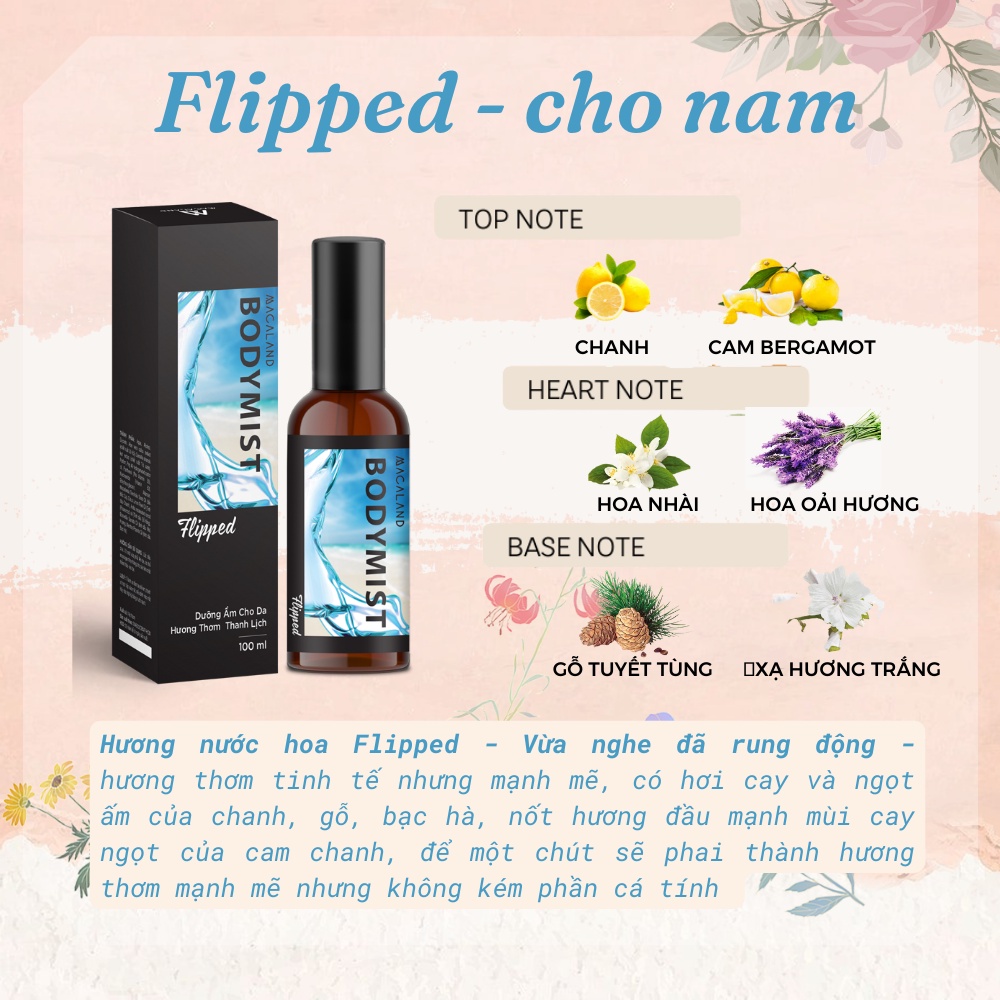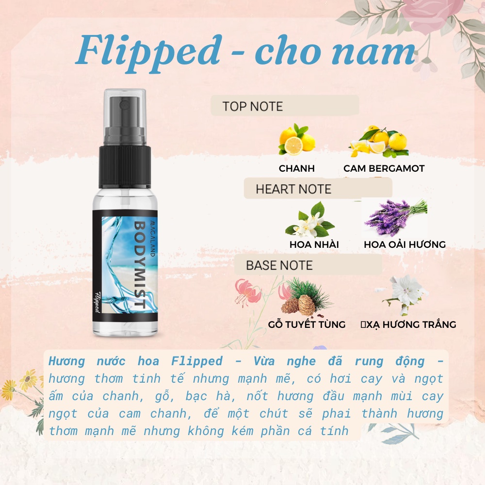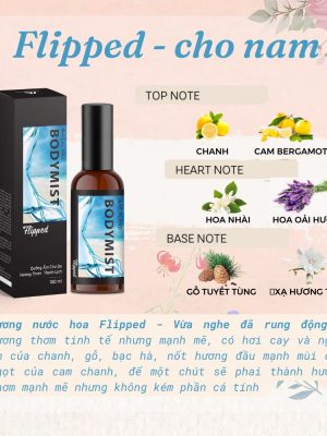🌸 Hương nước hoa Flipped (Hương thơm thanh mát): Vừa nghe đã rung động – hương thơm tinh tế nhưng mạnh mẽ, có hơi cay và ngọt ấm của chanh, gỗ, bạc hà, nốt hương đầu mạnh mùi cay ngọt của cam chanh, để một chút sẽ phai thành hương thơm mạnh mẽ nhưng không kém phần cá tính