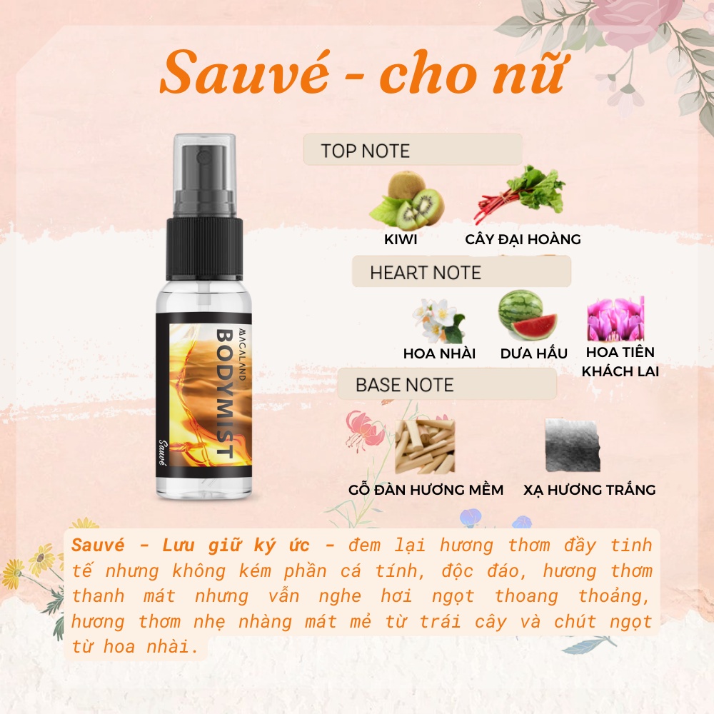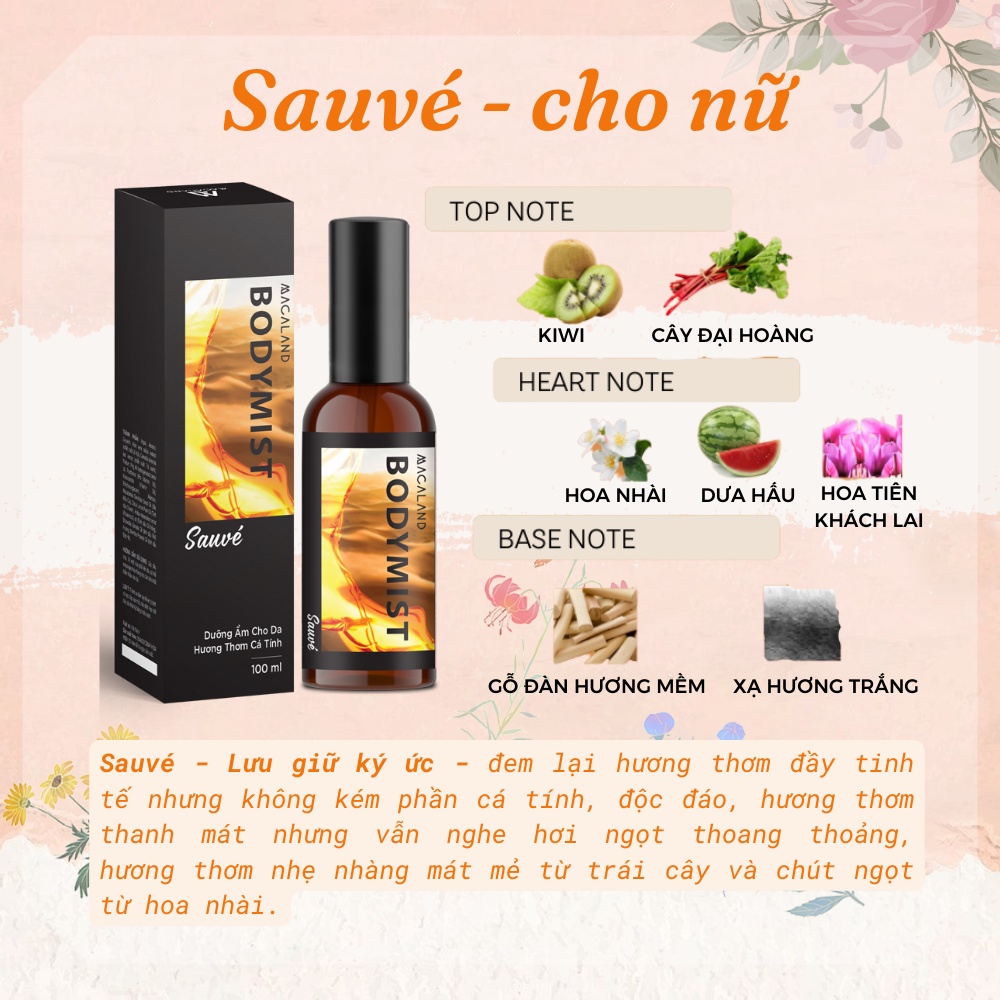 ♥️ Áp dụng công thức nước hoa công thức Pháp truyền thống nổi bật của Macaland từ trước đến nay, mỗi loại Body Mist Macaland đều có 3 tầng hương độc đáo mang đến hương thơm dịu nhẹ, giúp thêm phần tự tin và tạo ấn tượng tốt cho người đối diện.