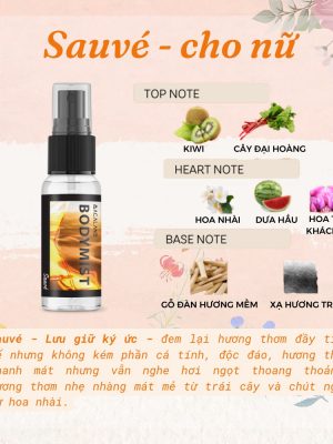 🌸 Hương nước hoa Sauvé (Hương thơm cá tính): Lưu giữ ký ức – đem lại hương thơm đầy cá tính, độc đáo, hương thơm thanh mát nhưng vẫn nghe hơi ngọt thoang thoảng, hương thơm nhẹ nhàng mát mẻ từ trái cây và chút ngọt từ hoa nhài.