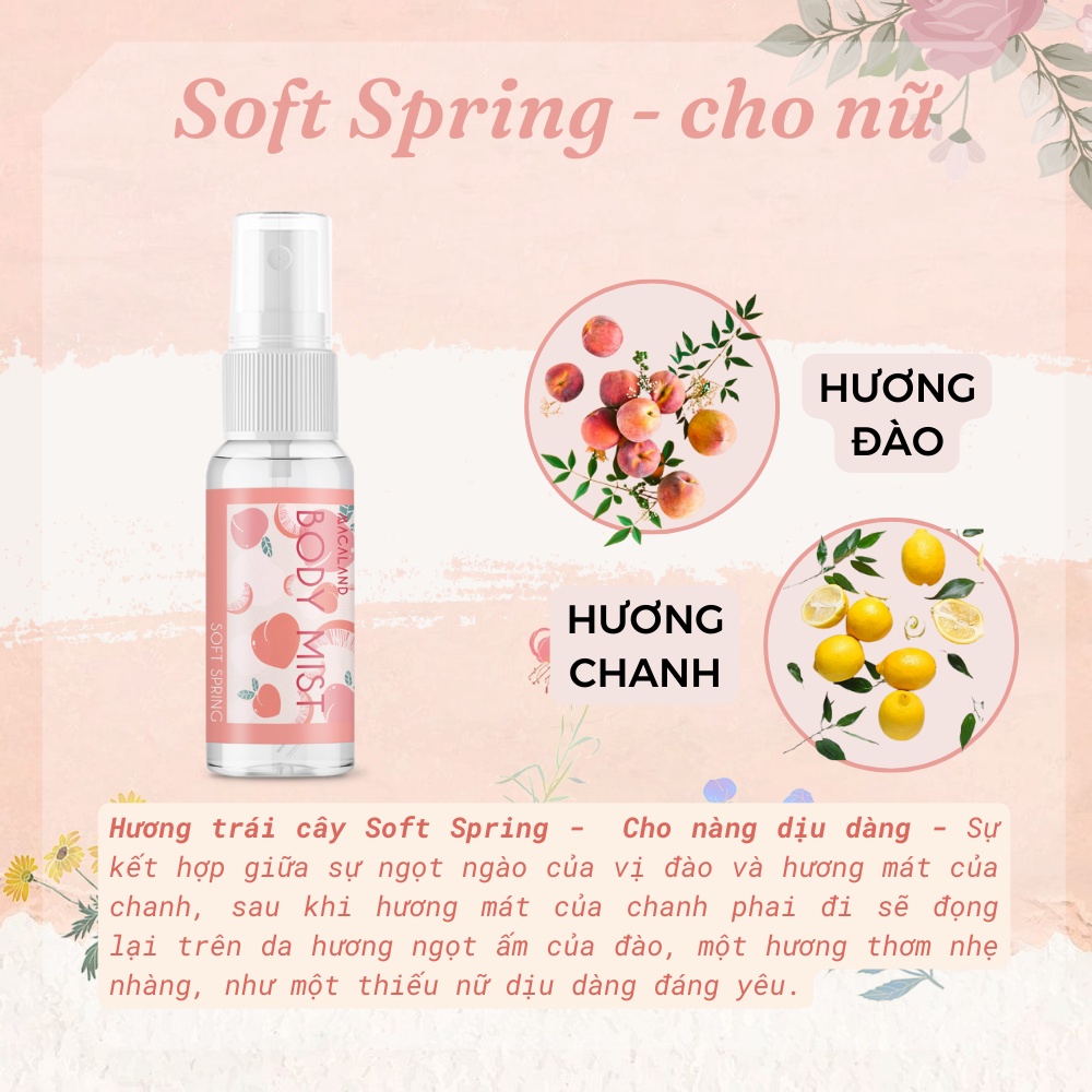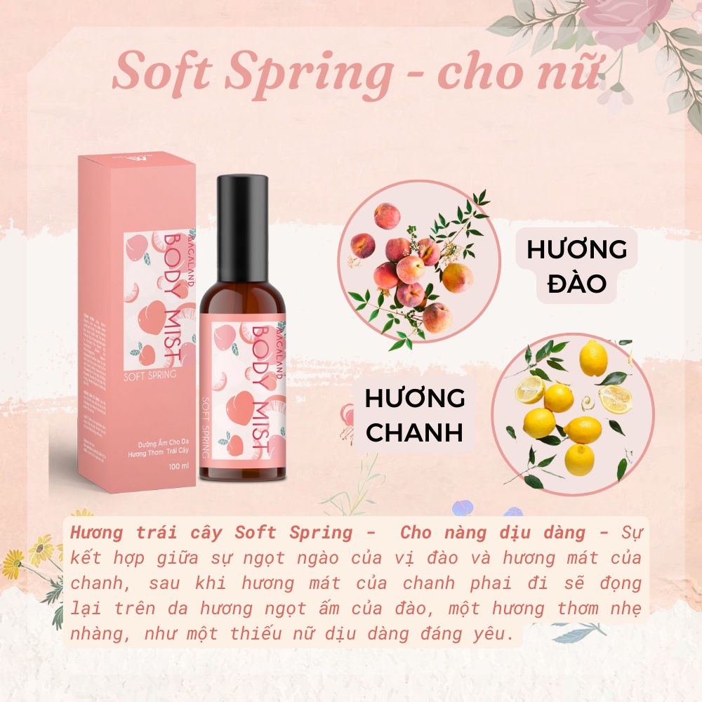 🌸 Hương trái cây Soft Spring: Sự kết hợp giữa sự ngọt ngào của vị đào và hương mát của chanh, mùi ngọt nhẹ nhàng, như một thiếu nữ dịu dàng đáng yêu