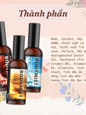 – Sản phẩm là sự kết hợp của nước hoa và serum dưỡng thể, nồng độ hương không cao như nước hoa, điều này giúp cho sản phẩm có mùi hương dịu nhẹ và an toàn với da hơn.