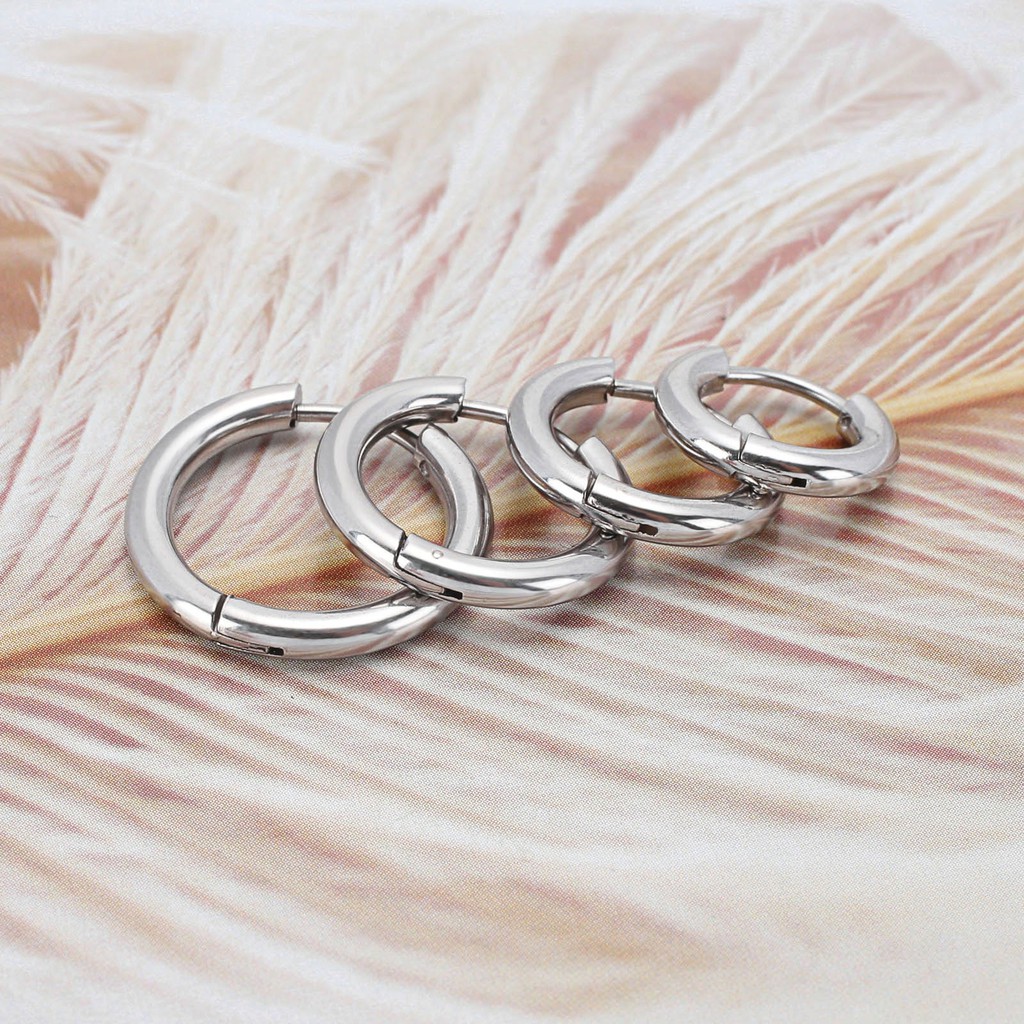 Bông tai dáng tròn thiết kế đơn giản hợp thời trang phong cách Hàn Quốc cho nữ (1 pcs)