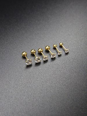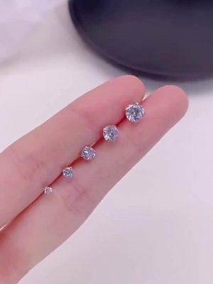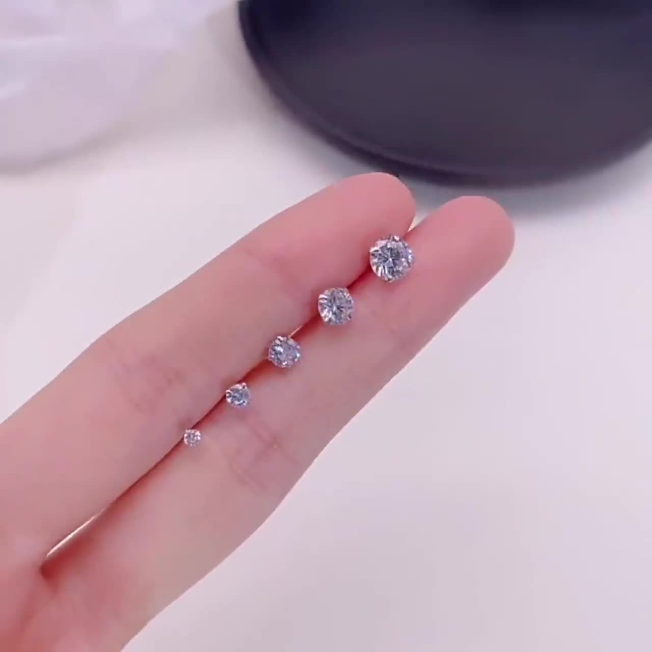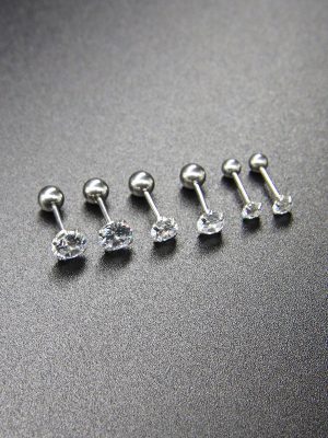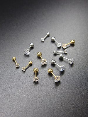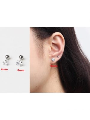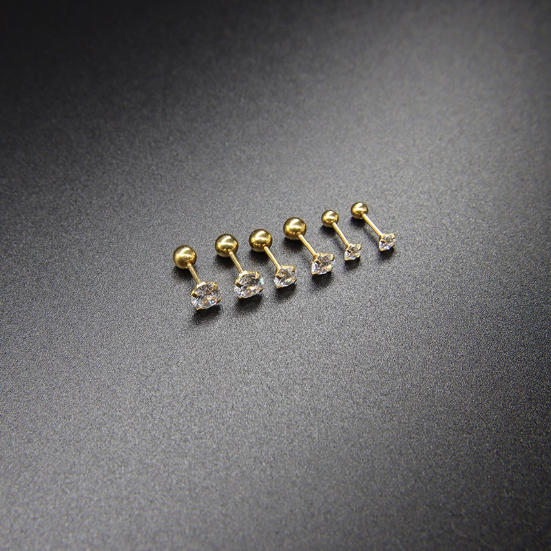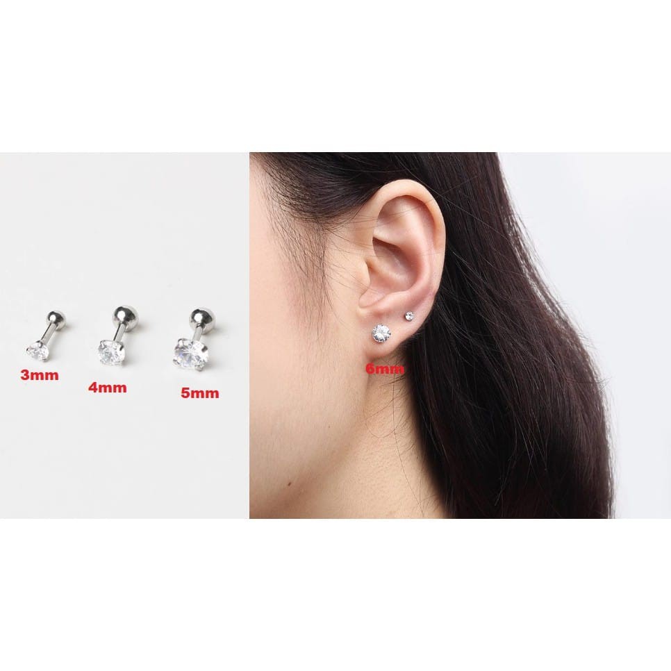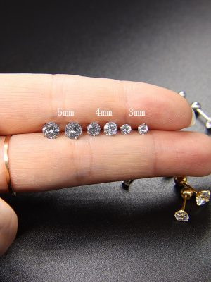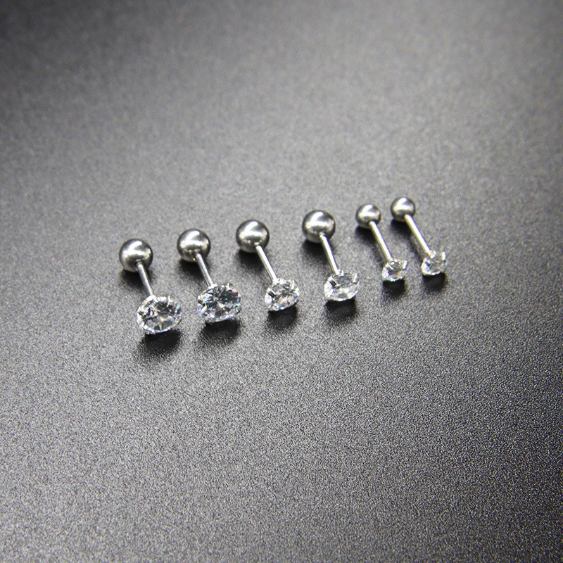 Bông tai thép titan khuyên đính kim cương nhân tạo