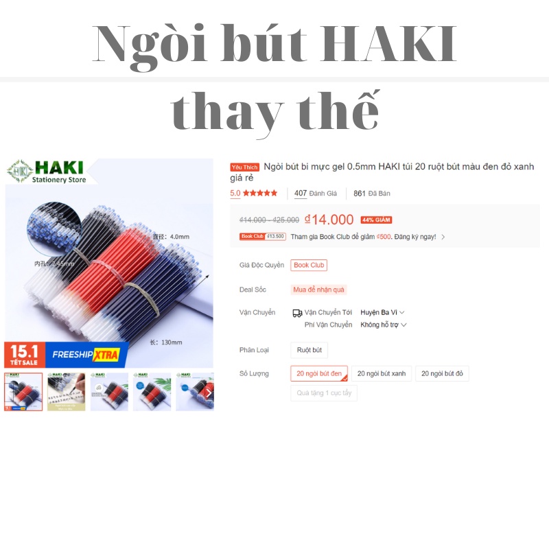Thông tin sản phẩm: Bút bi nước văn phòng mực gel 0.5mm HAKI mực đều nét chữ đẹp đủ màu xanh đen đỏ