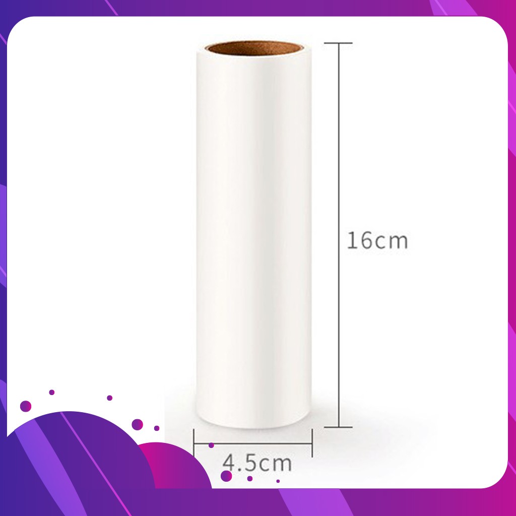 Lõi lăn bụi gồm cuộn giấy lăn bụi 60 tờ, không gây dính keo lên bề mặt quần áo, sofa, gối, giường… khi lăn.