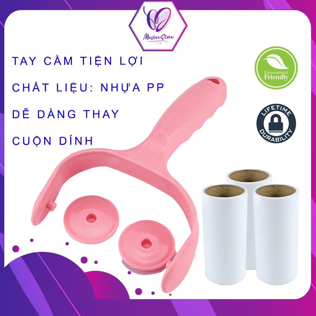 Chất liệu: cán bằng nhựa (phần màu hồng) + lõi lăn bụi (phần màu trắng) 60 tờ.