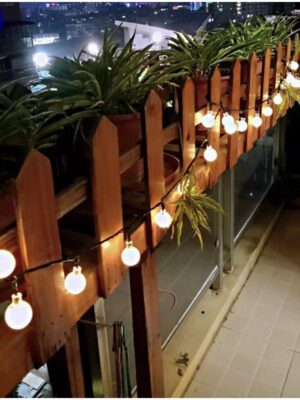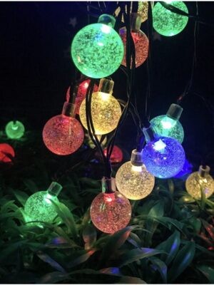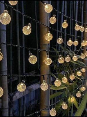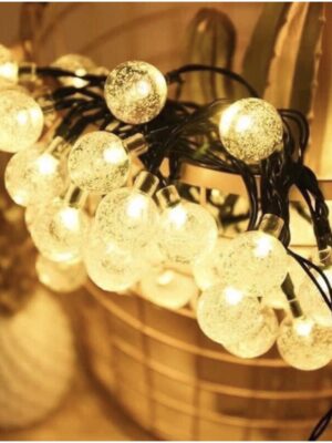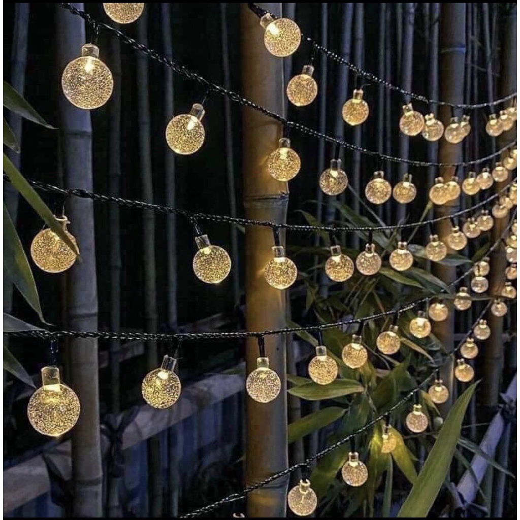 Sản phẩm có độ dài 9m gồm 40 bóng bi bọt ( hoặc pha lê) có màu vàng ấm hoặc đủ màu.