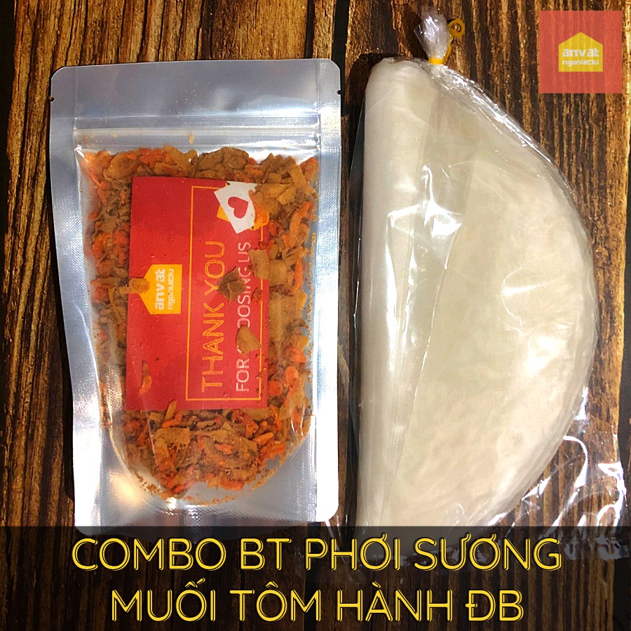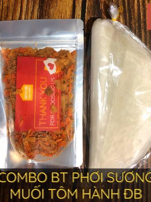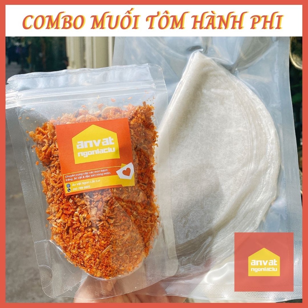 Combo 200g bánh tráng phơi sương Củ Chi dẻo mềm + 100g Muối tôm hành phi công thức ĐỘC QUYỀN. Fan bánh tráng không nên bỏ qua món ăn vặt gây nghiện này đâu nha. Bánh tráng siêu dẻo gói với muối thơm nồng vị tôm, giòn giòn hành phi, lại thêm vị ngọt thanh của ruốc hành sấy khô… Rất tiện lợi, ăn nhanh chóng gọn gàng không phải chuẩn bị gì mà lại RẤT NGON. Món này vừa luyện phim vừa ăn là cứ “LÀM TỚI” không dừng được đâu hehee