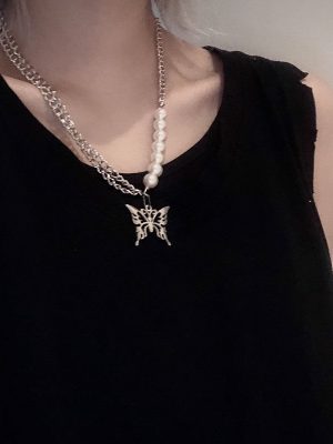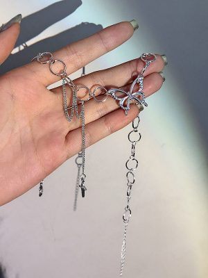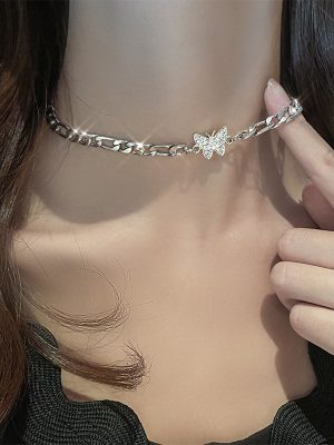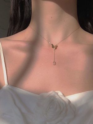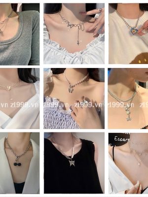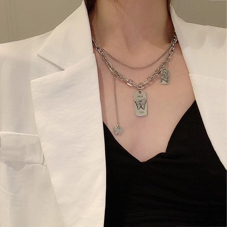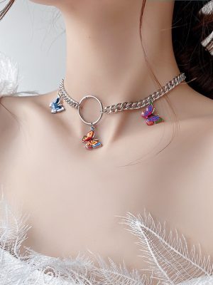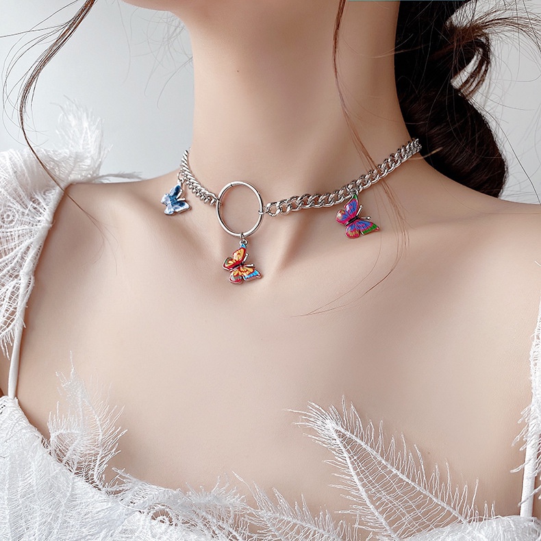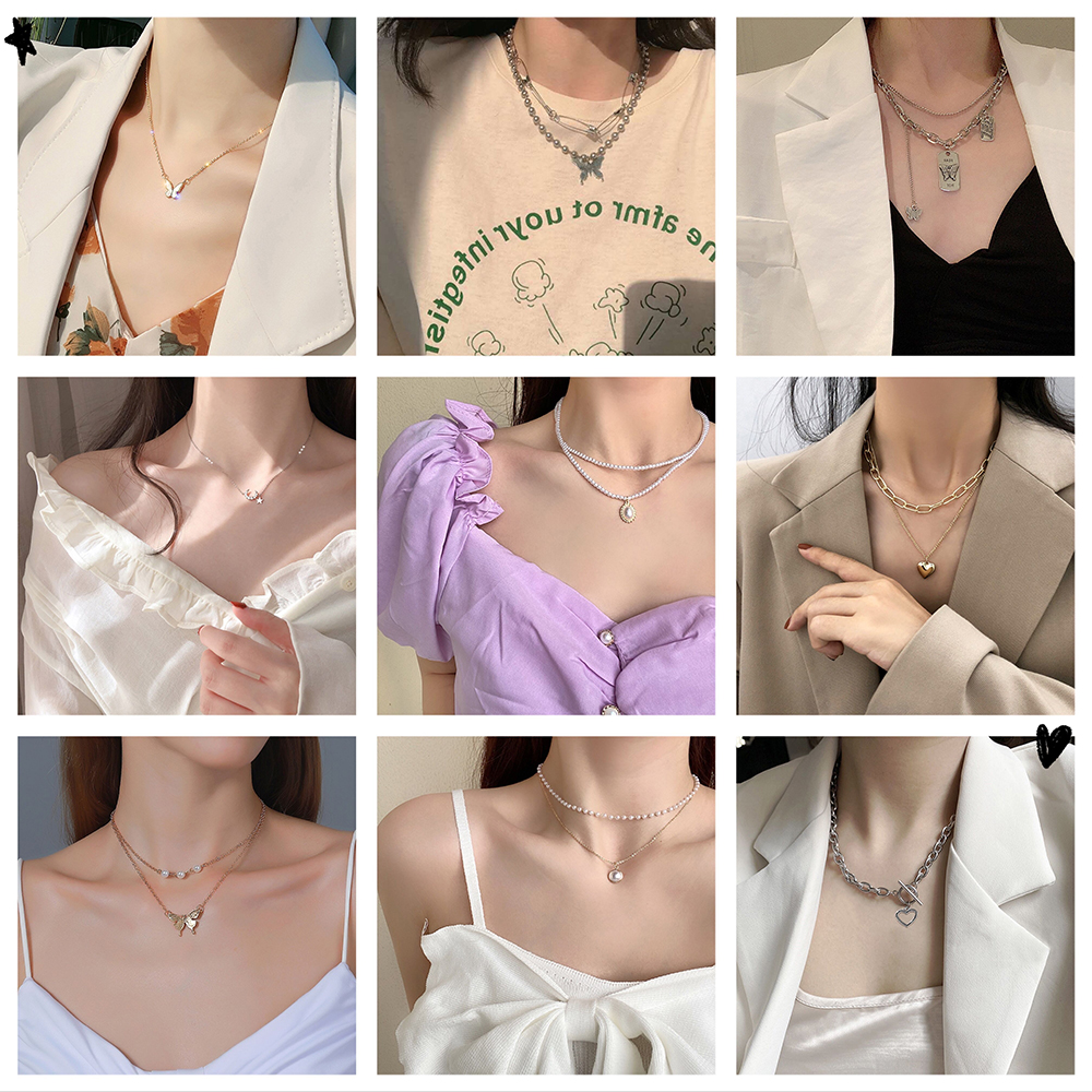 Dây chuyền hợp kim nhiều sợi mặt bươm bướm sành điệu phong cách Hàn Quốc cho nữ