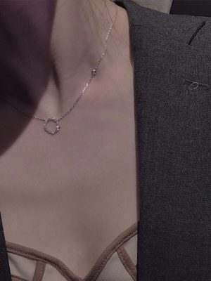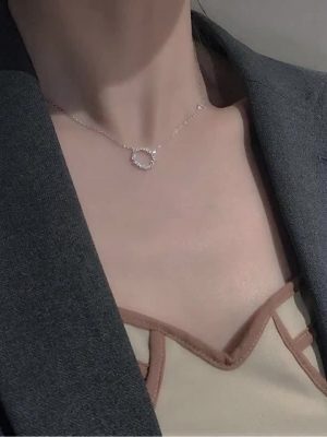 Dây chuyền mặt tròn đính đá phong cách Hàn Quốc