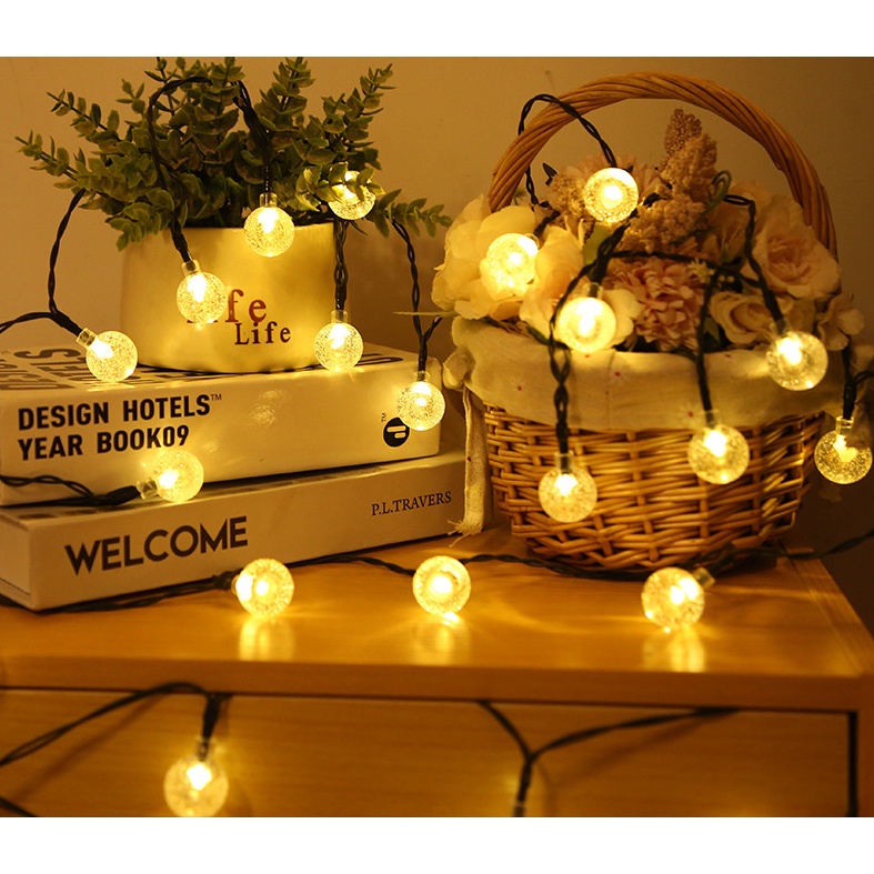 Dây đèn 10m Led Trang trí Bi bọt nước trong veo đẹp mắt (đủ màu), giáng sinh noel, năm mới, tết – có giắc nối tiếp
