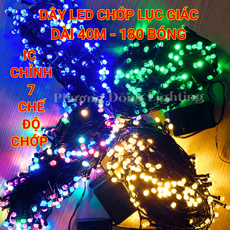 Dây đèn LED chớp Lục Giác 40m – 180 bóng Trang trí Noel – Lễ – Tết