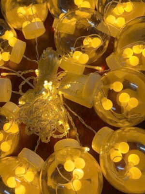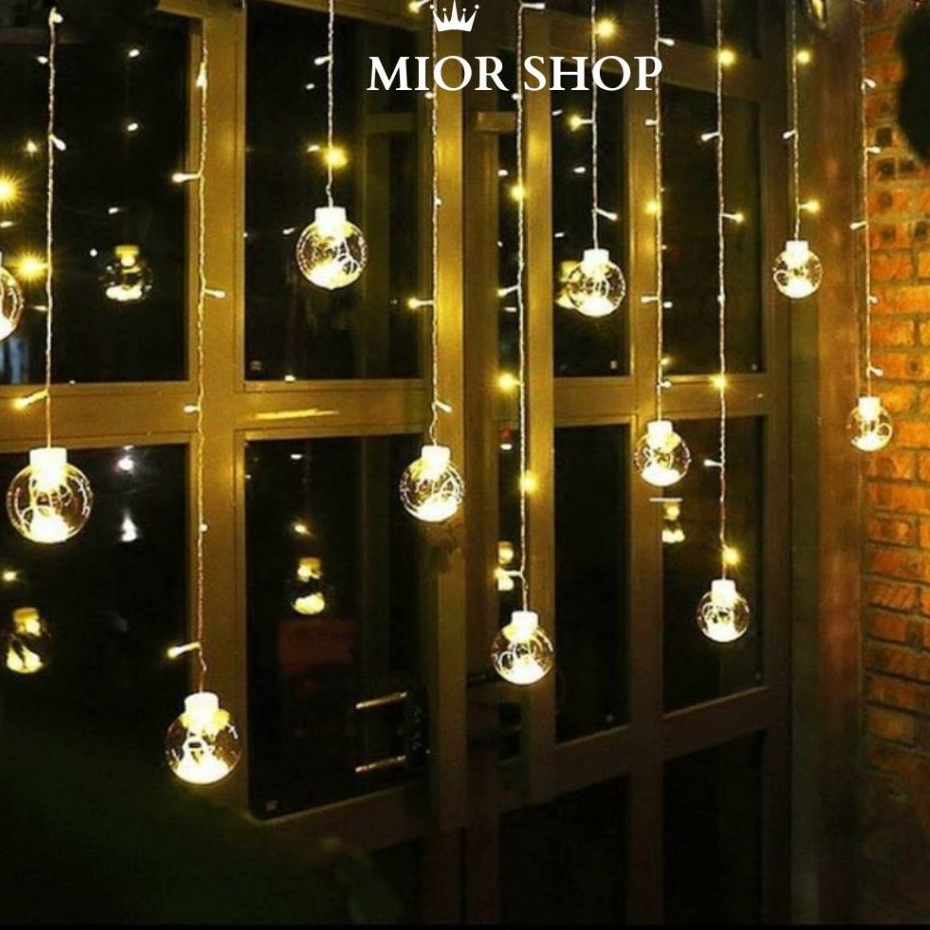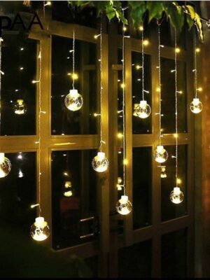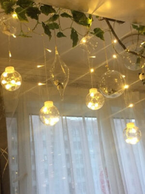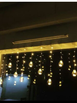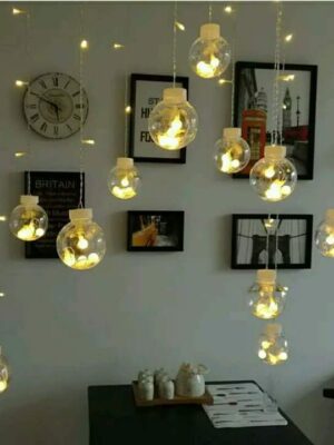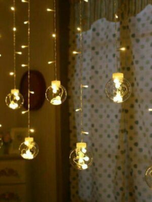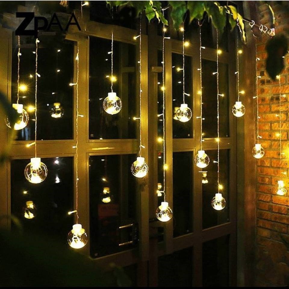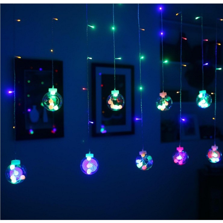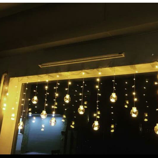 Đèn rèm cầu với những quả cầu lung linh giúp căn phòng thêm xinh xắn, lãng mạn. Đèn dùng được ngoài trời nhé.