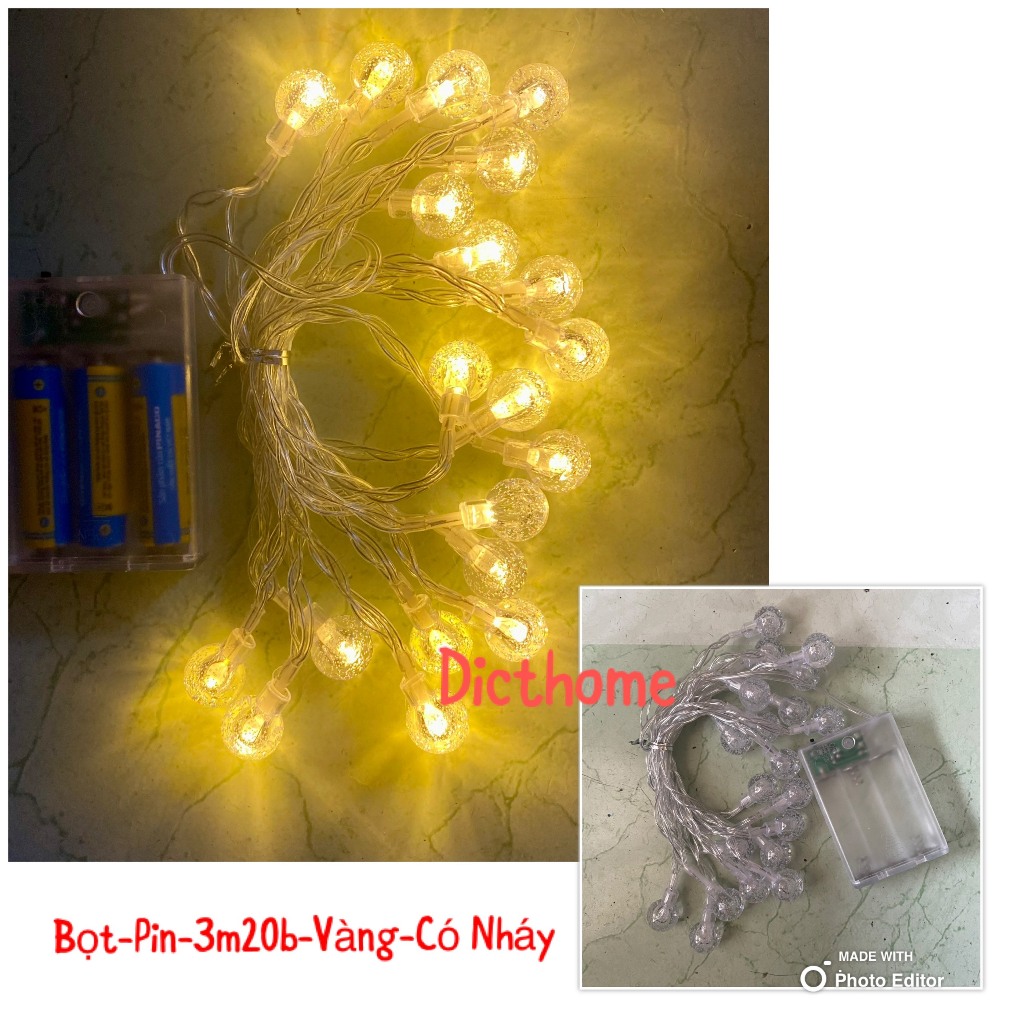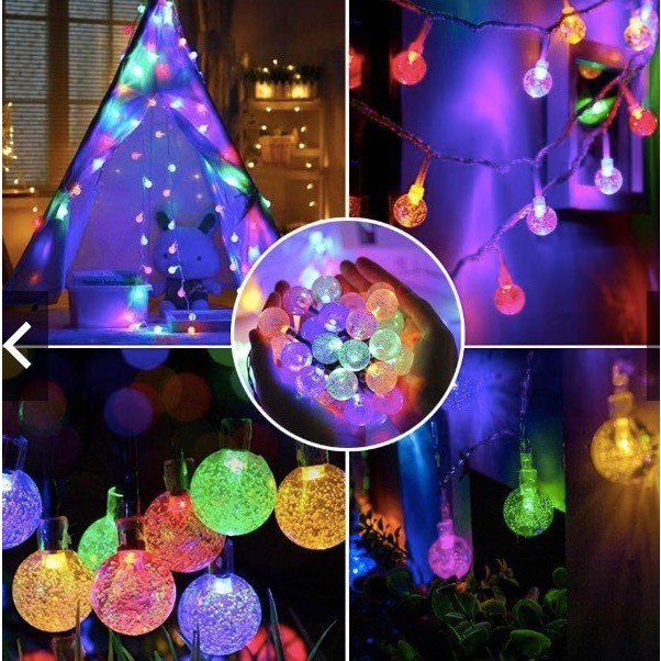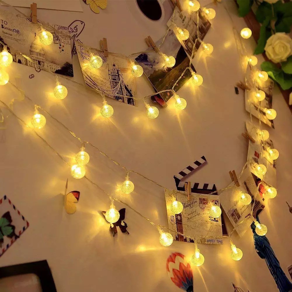 Dây Đèn Led Trang Trí Bi Bọt Bóng Tròn Pha Lê Trang Trí Tết Noel Quán Cafe