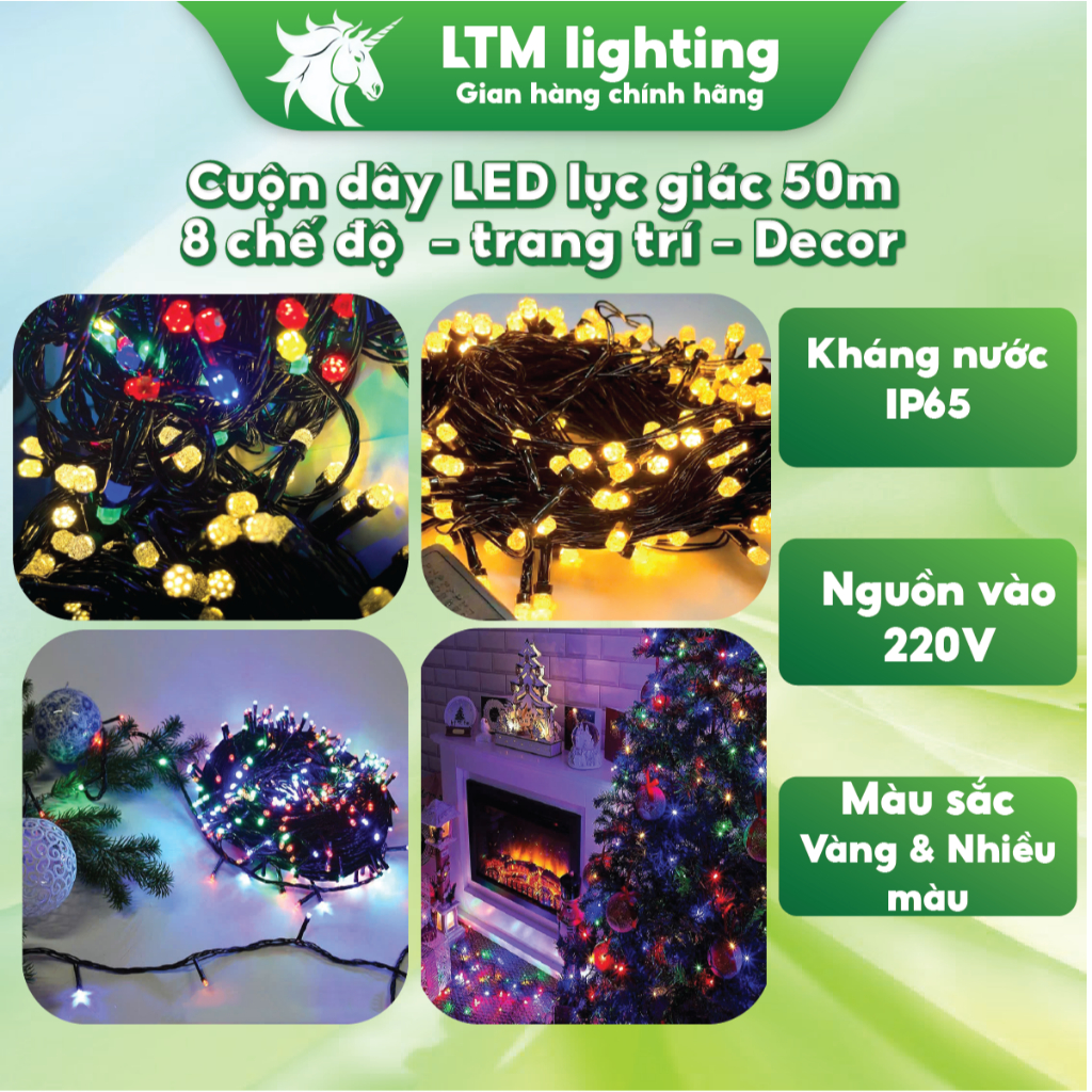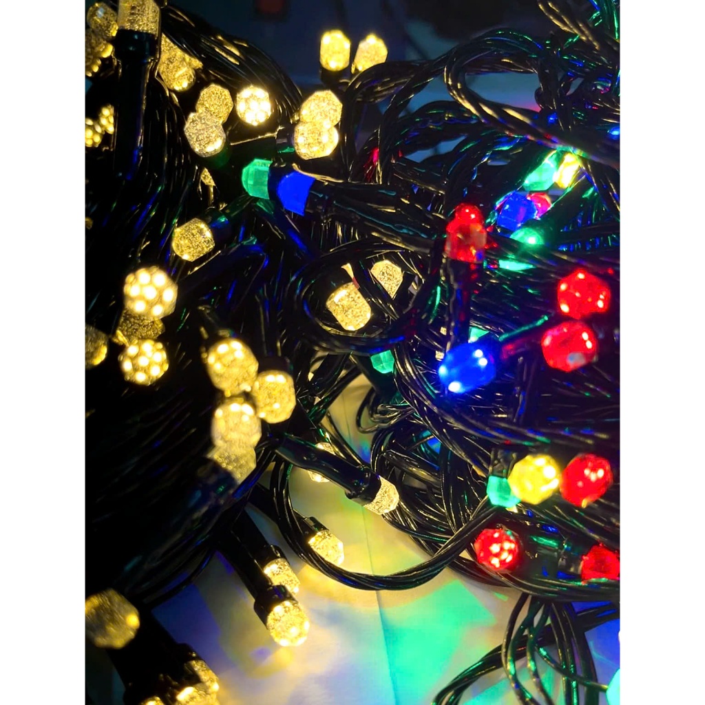 Dây Đèn Led Tròn – Lục Giác Dài 50m Nhấp Nháy Nhiều Màu Và Vàng Trang Trí Sân Vườn, Gia Đình, Noel