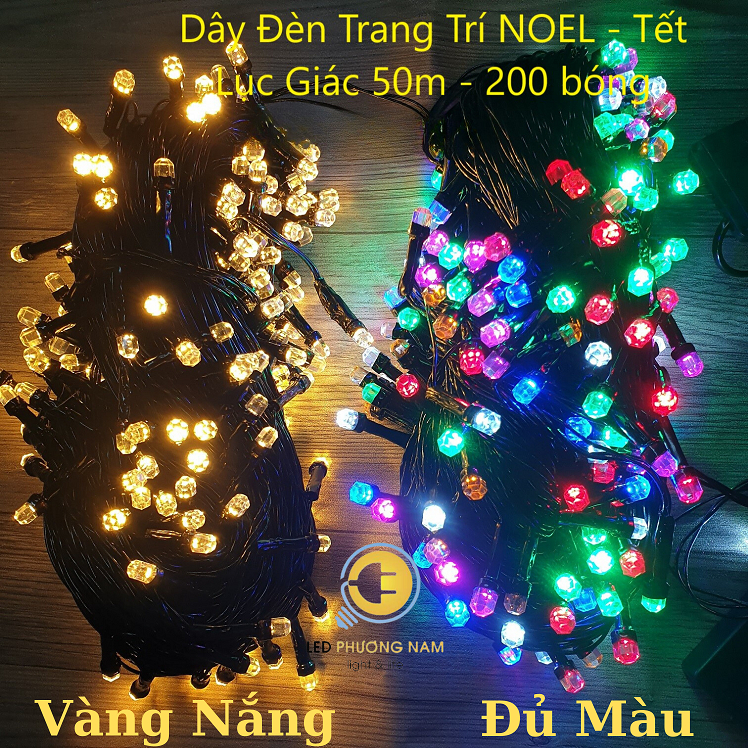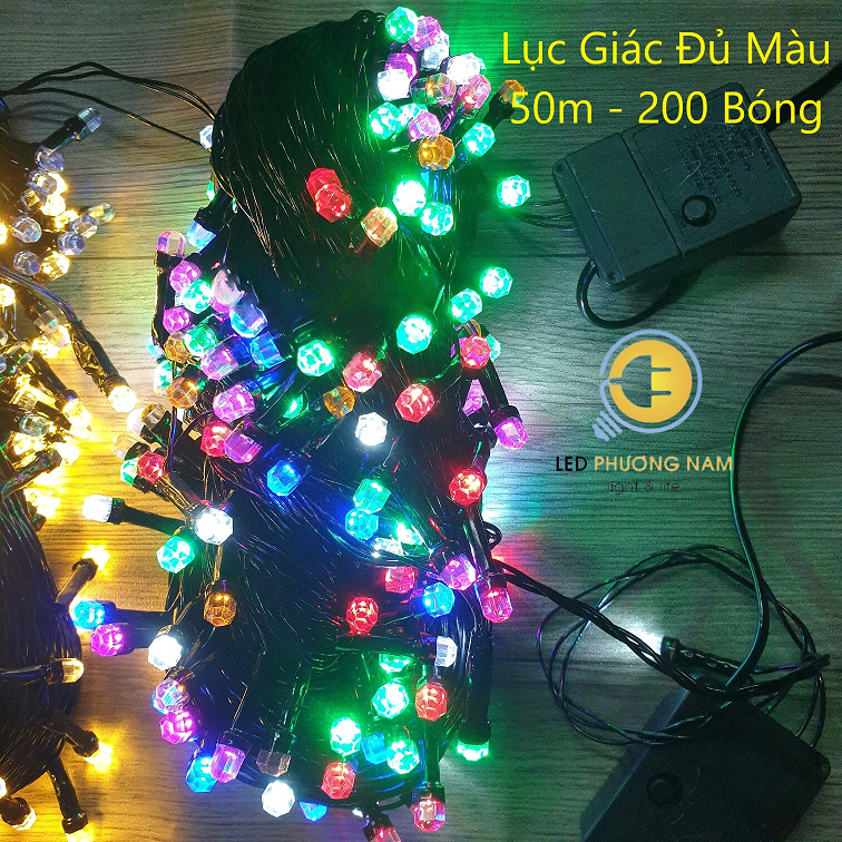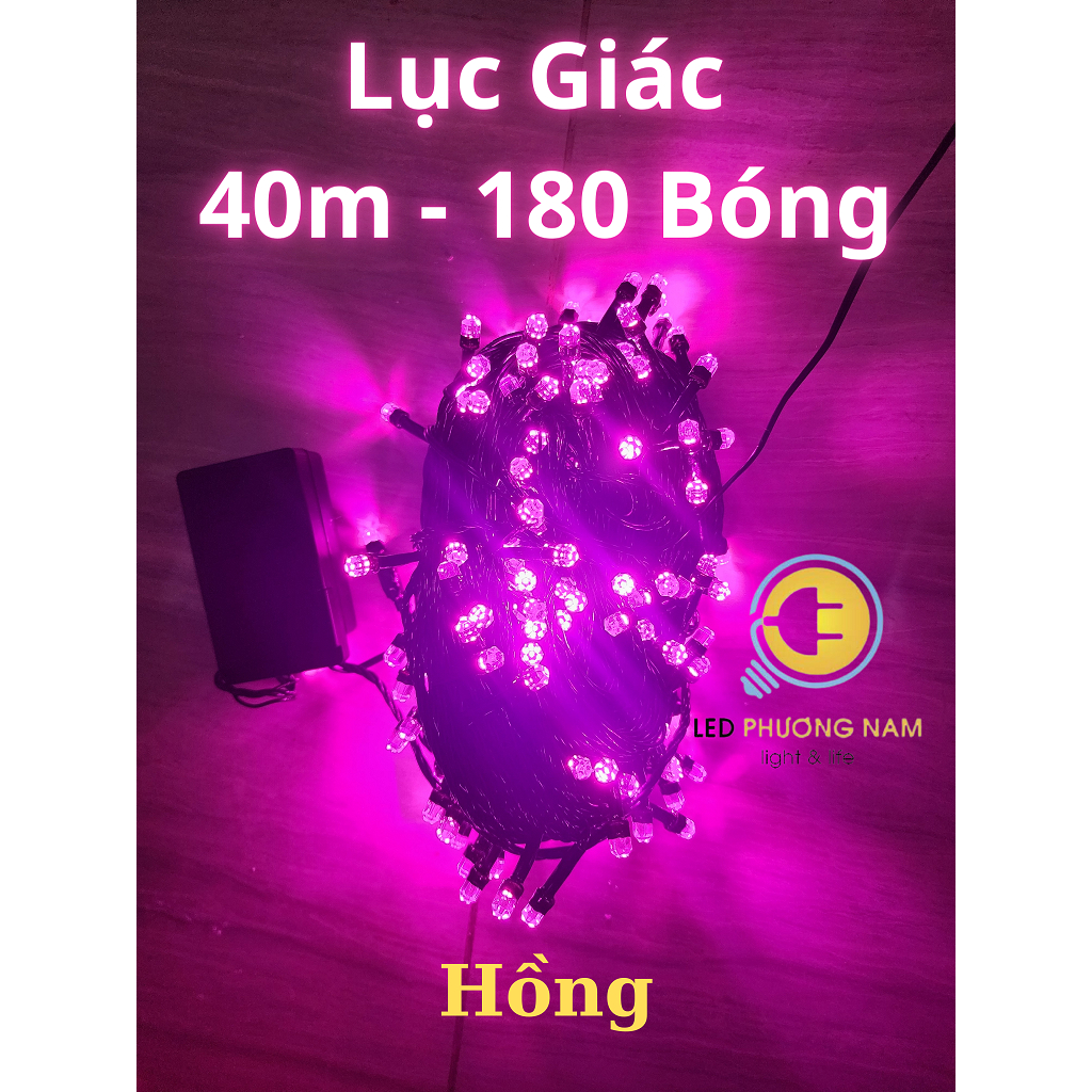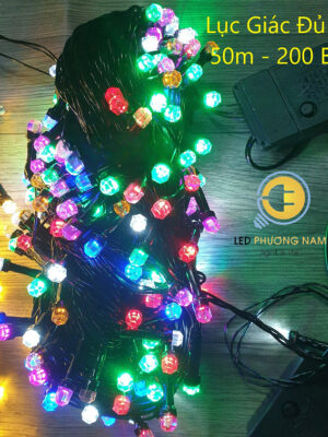 Dây Đèn Trang Trí Ngoài Trời Noel 40m – 180 bóng, Lục Giác bóng lớn