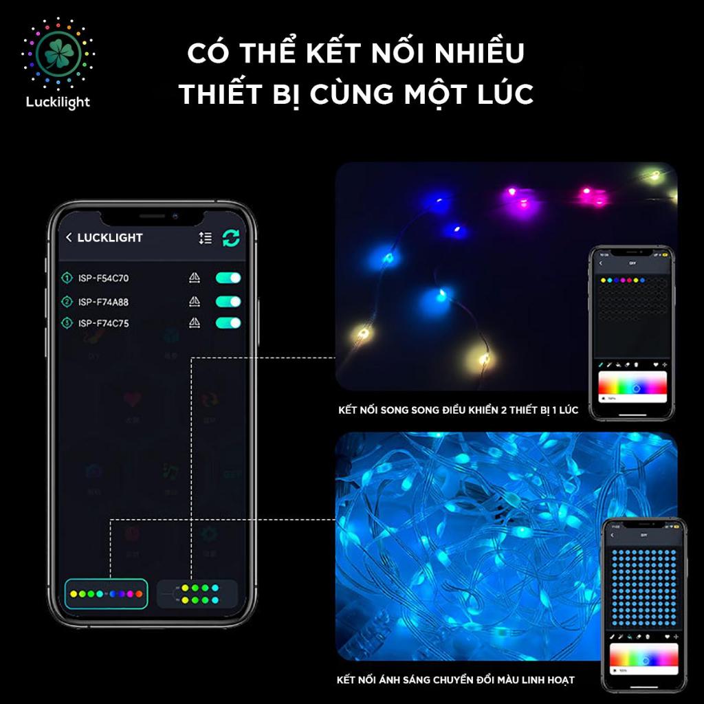– Đèn Fairy Light 16 triệu màu có thể điều chỉnh rất rất nhiều chế độ sáng qua APP điện thoại như nháy đuổi màu (hơn 200 chế độ đuổi), nháy theo nhạc, hẹn giờ bât tắt, thay đổi độ sáng, tốc độ nháy, tự DIY màu nháy, … các bạn có thể tha hồ trải nghiệm.