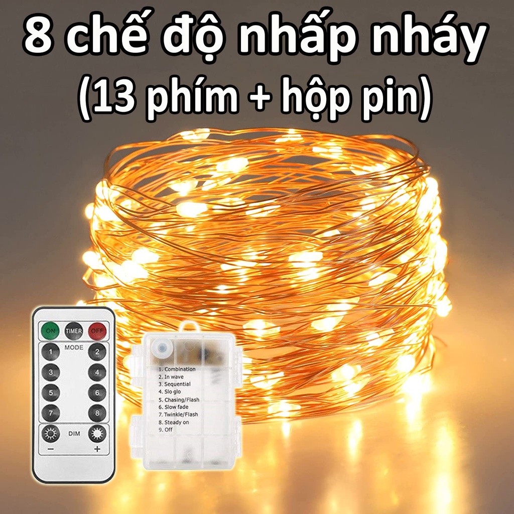 Đèn LED dây đồng đèn đom đóm đèn thần tiên điều khiển từ xa 13 key 8 chế độ trang trí Noel và Tết trời chống nước