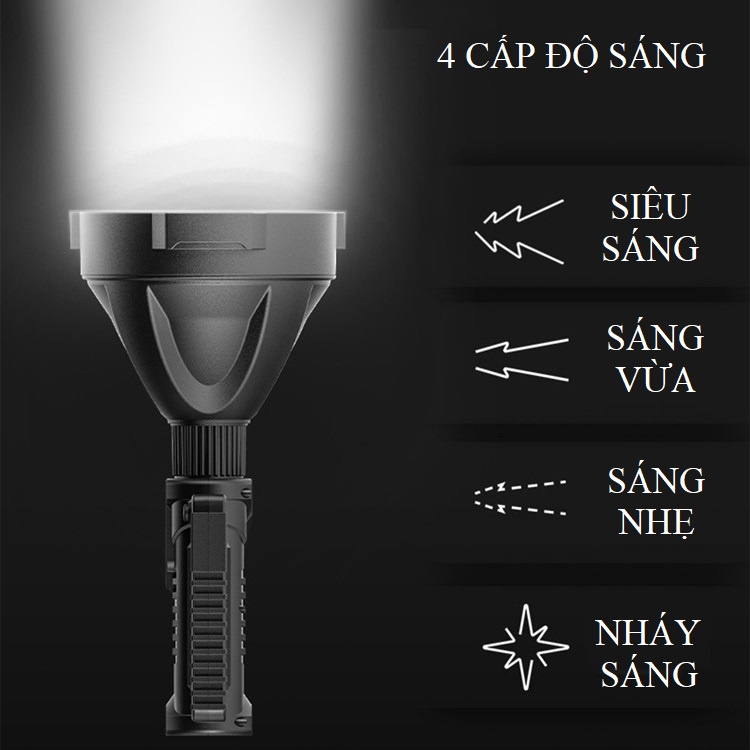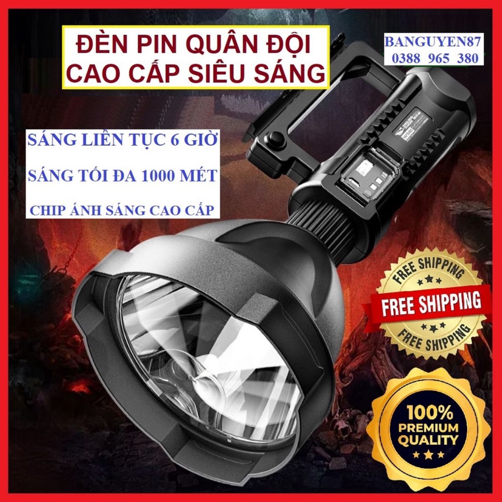 Đèn pin cầm tay siêu sáng chiếu xa 1000m chống thấm nước có chân đế W590 đèn pin QUÂN ĐỘI
