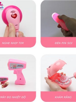 - Cách chơi: Bé đóng vai bác sĩ khám chữa bệnh cho các bạn và ba mẹ