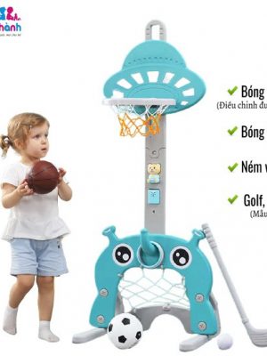 -Kích thước mẫu A màu xanh green chiều cao 83 cm đến 122 cm. Có 1 bóng đá + 1 bóng rổ + 4 ném vòng + 1 golf + nhạc cảm biến phù hợp cho bé 1 – 3 tuổi