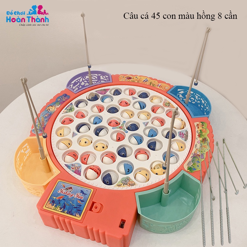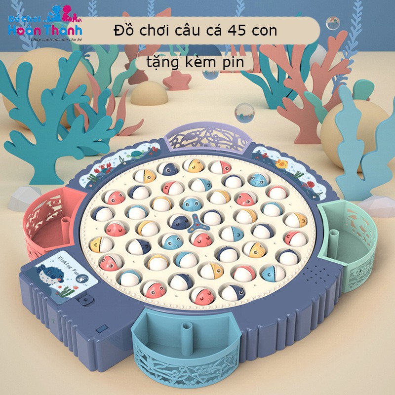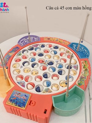 + Đồ chơi câu cá điện cho bé 45 con cá, 4 cần câu nam châm, 4 cần móc , tặng kèm 3 pin AA
